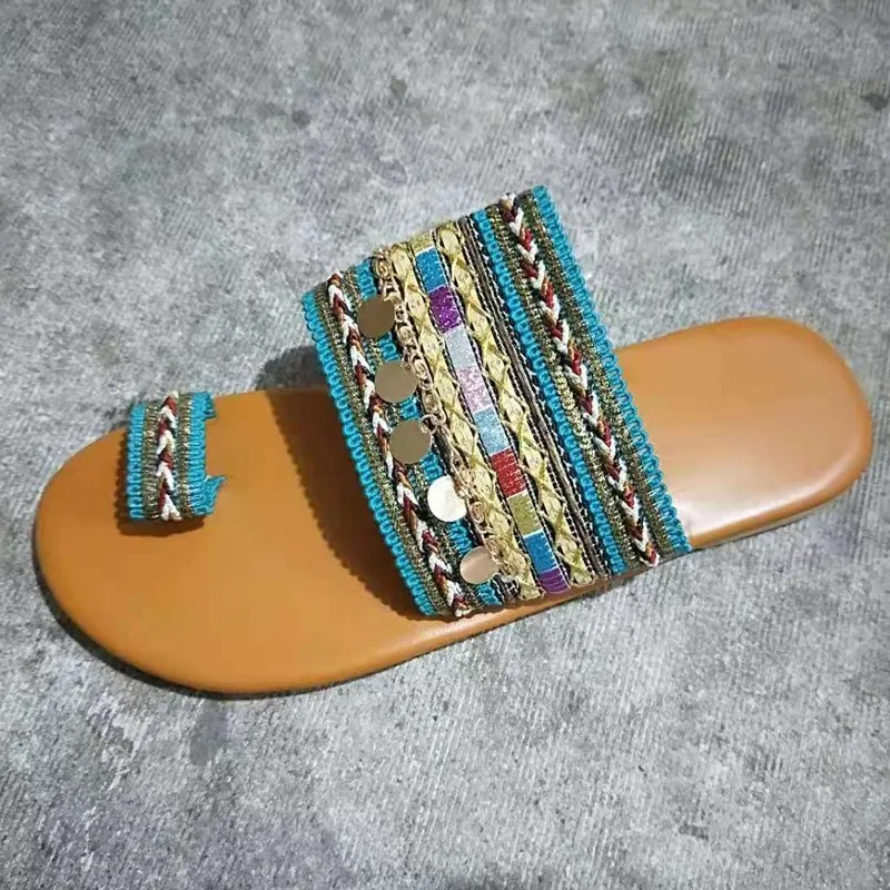Богемные туфли с этническим носком, на плоской подошве, Супермягкие женские римские тапочки в стиле ретро, летние тапки с влюбленными ощущениями, новинка 2021