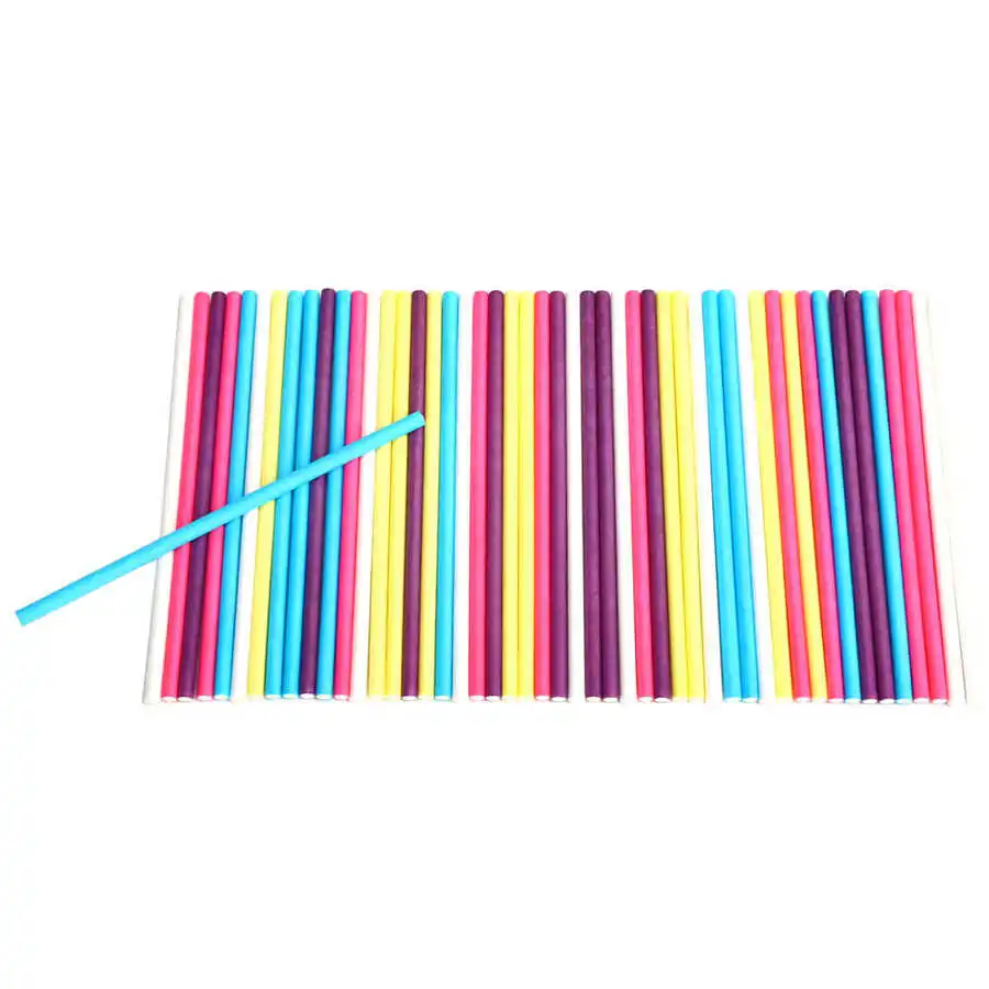 Характеристика:1. Подходит для украшения и демонстрации леденцов, конфет, пирожных и других десертов.2. Бумажная палочка обладает хорошей прочностью, высокой плотностью и не легко ломается или становится влажной.3. Пищевой бумажный материал, прочный и плотный, не содержит флуоресцентных агентов, безопасный и нетоксичный.4. Поверхность гладкая, твердость сильная, и ее можно использовать повторно для удовлетворения потребностей использования.5. DIY леденец из бумаги, экологически чистый, лучшая альтернатива пластиковым палкам.Спецификация: