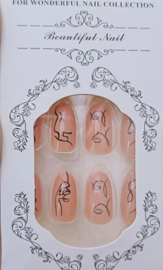 24 шт.коробка, французские накладные ногти телесного цвета с узором...