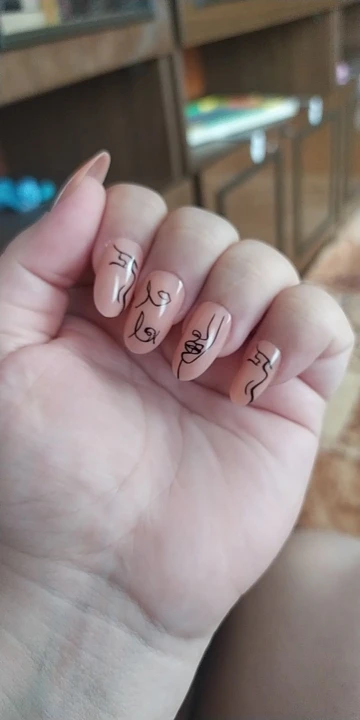 Накладные ногти, абстрактное искусство, короткие, плоские, заострен...