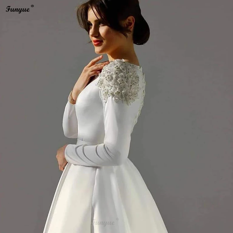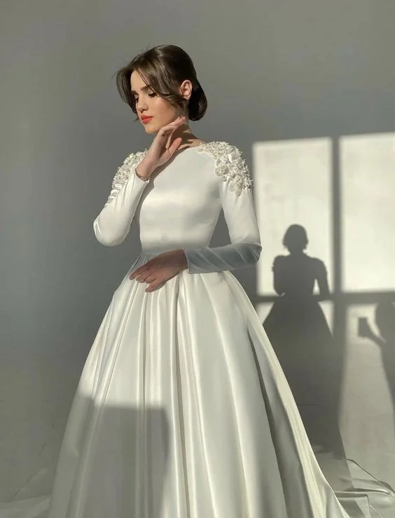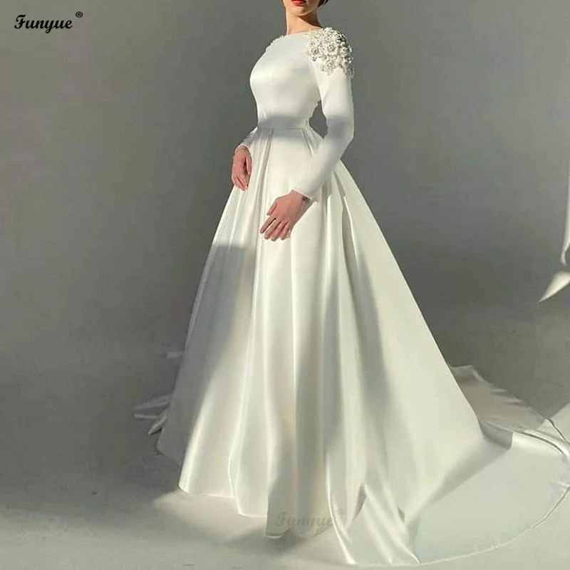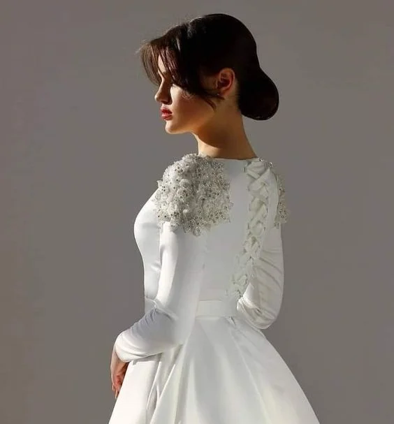 Женское атласное платье It's yiiya, белое платье в мусульманском стиле с длинным рукавом, расшитое бисером, с цветами в винтажном стиле на лето 2019