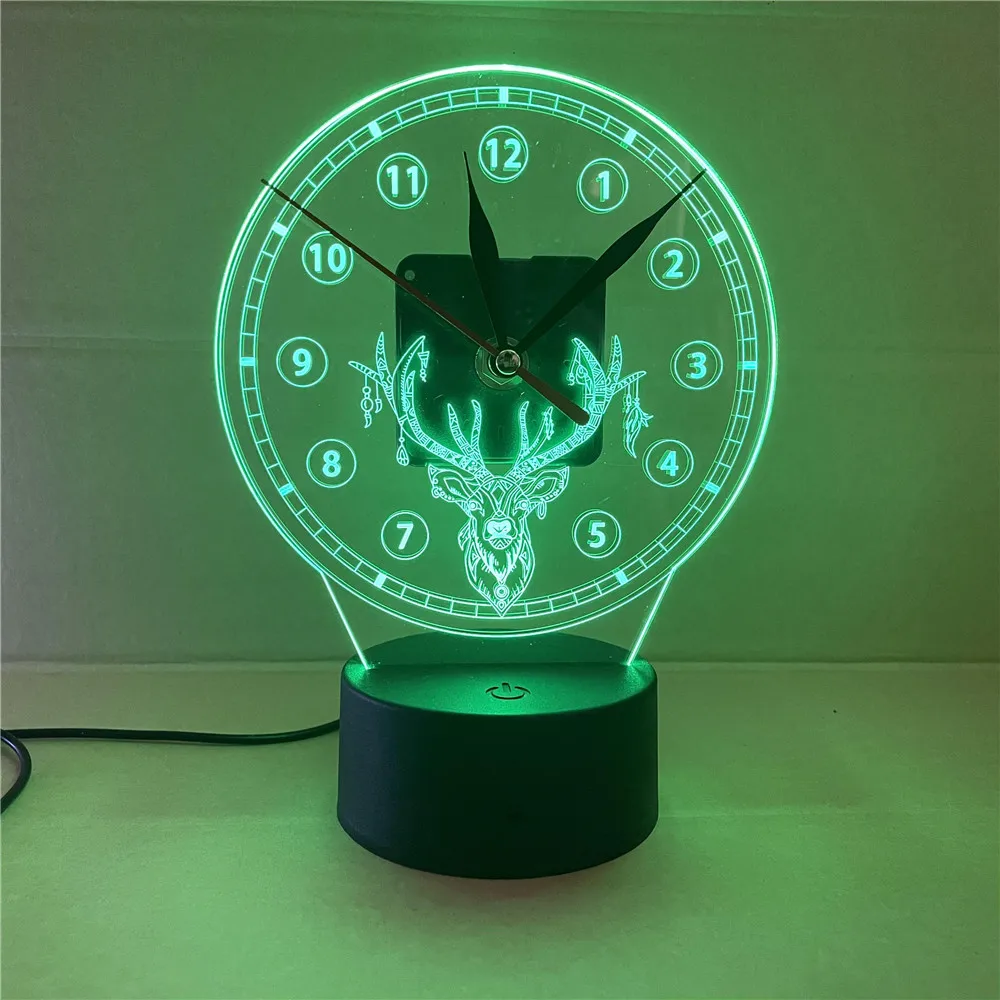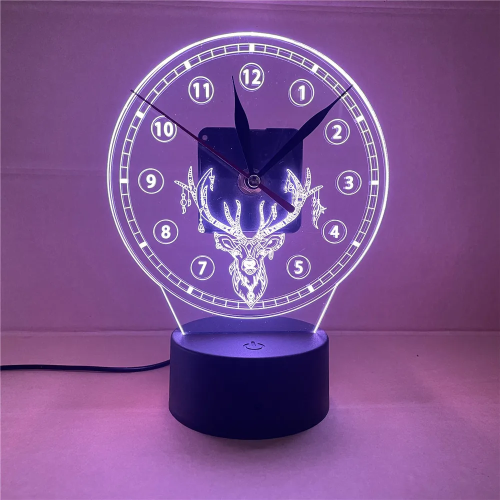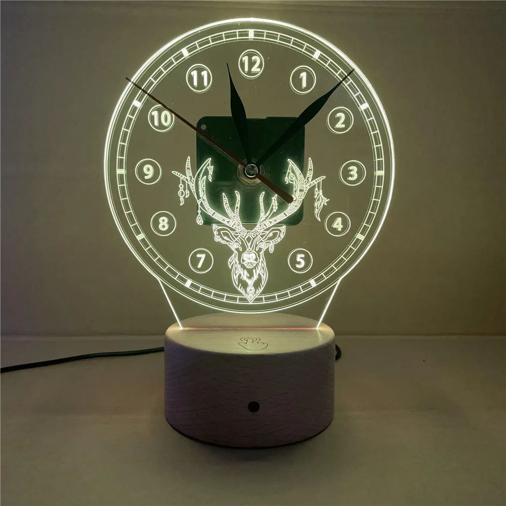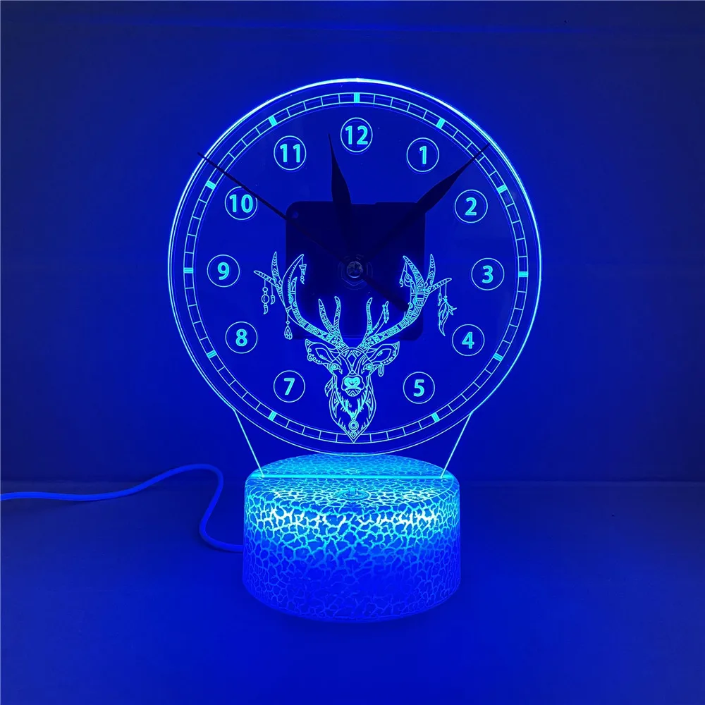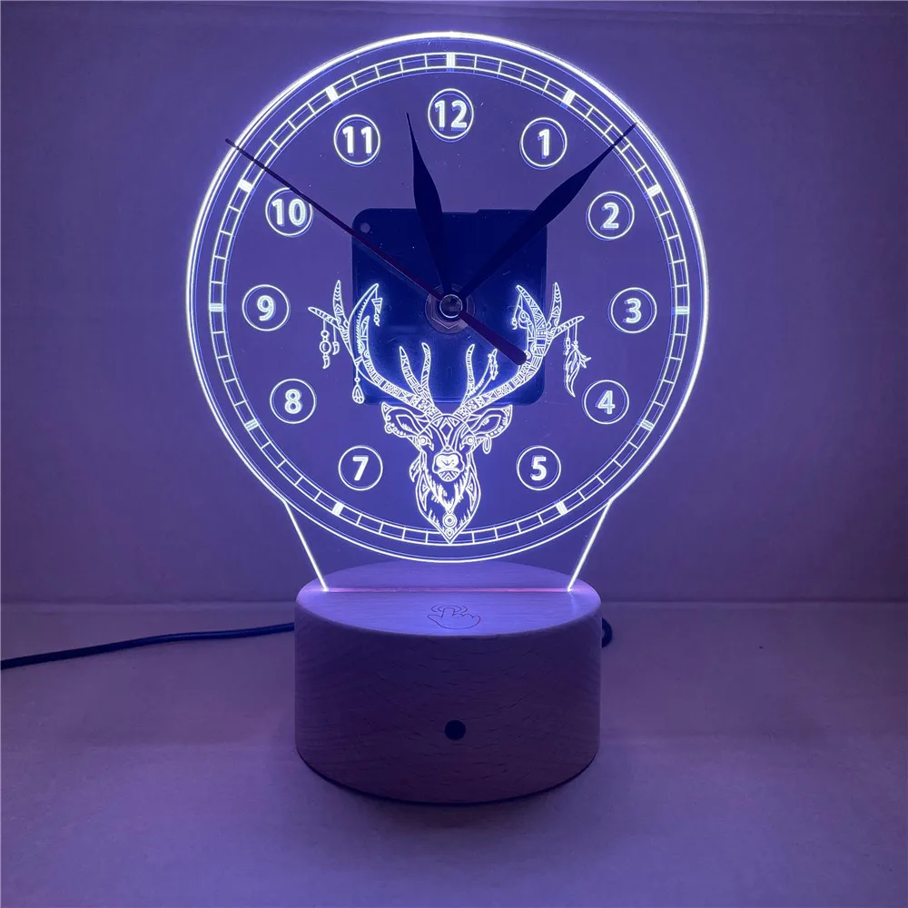 3d-будильник Elk Lamp, светодиодный ночсветильник с дисплеем, настольная лампа с USB, 5 В, батарея для домашнего декора, в подарок, искусственная светодиодная деревянная основа