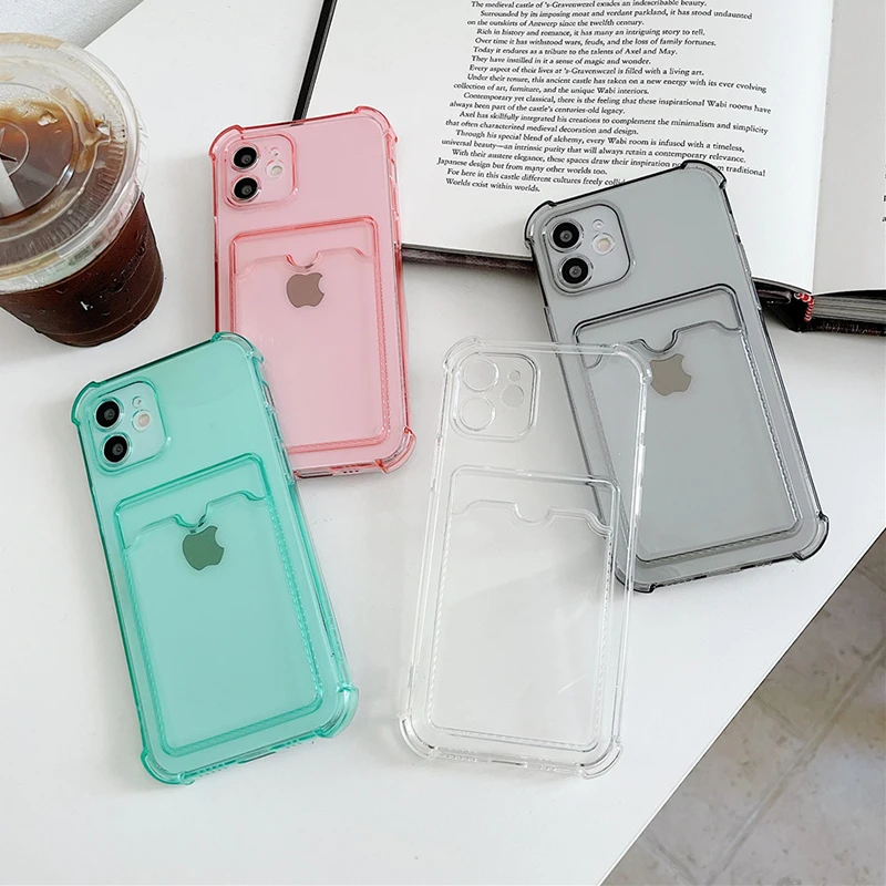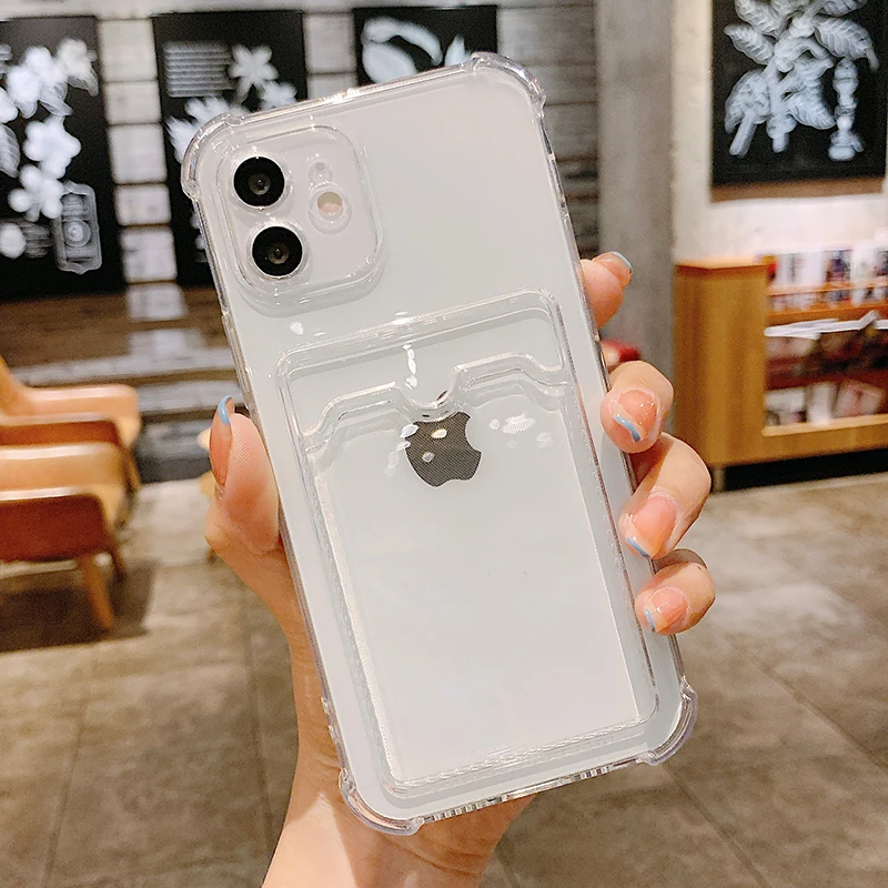 Противоударный силиконовый чехол для телефона iPhone 12 11 Pro Max, защитный чехол для iPhone X Xr Xs Max 7 8 Plus, задняя крышка с держателем для карт