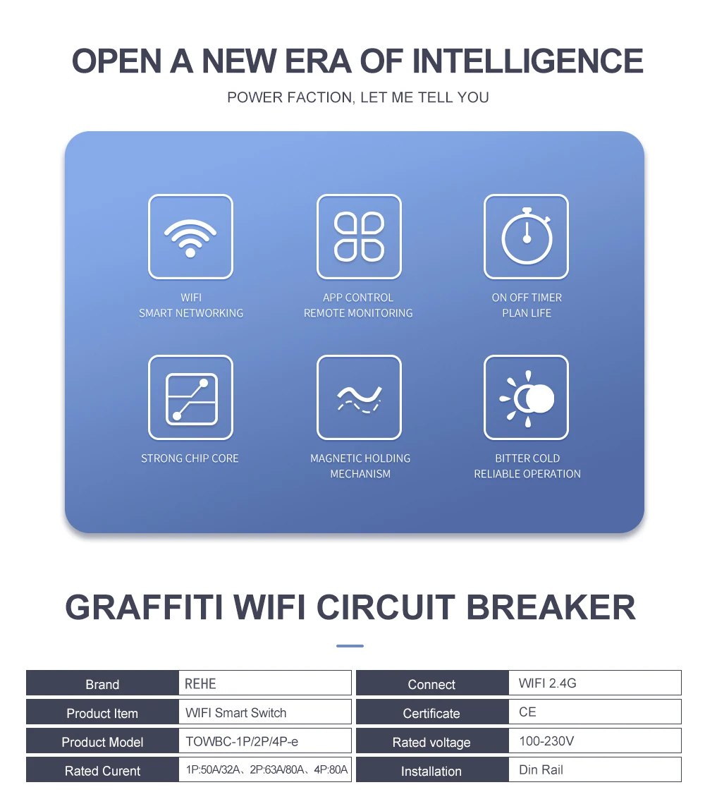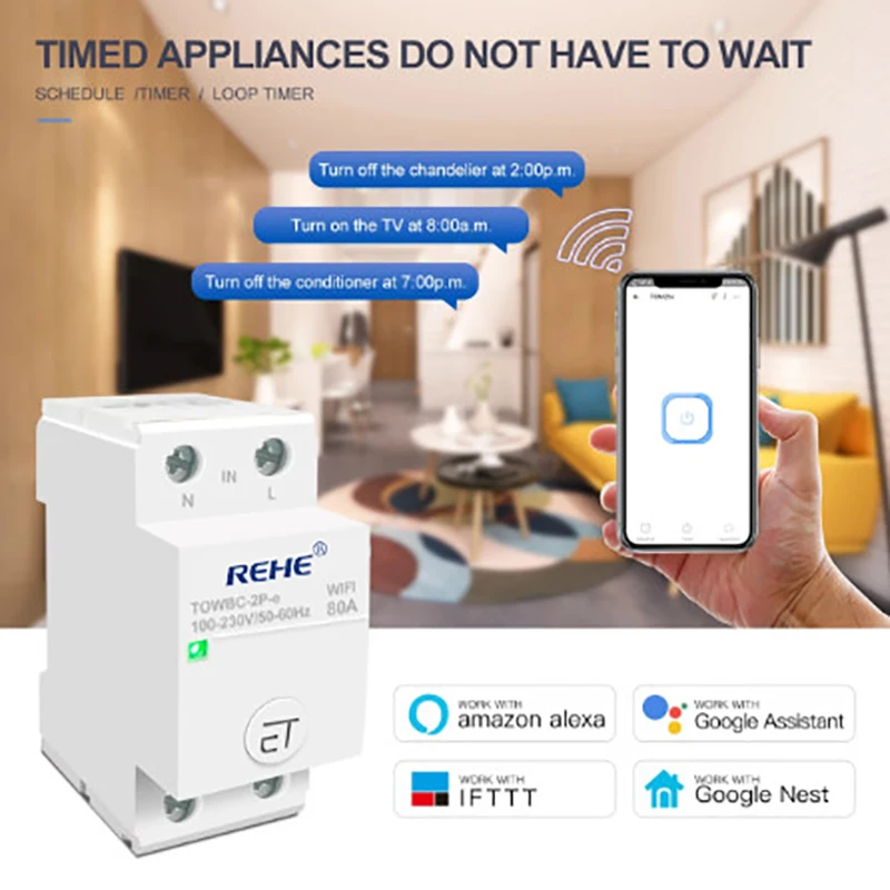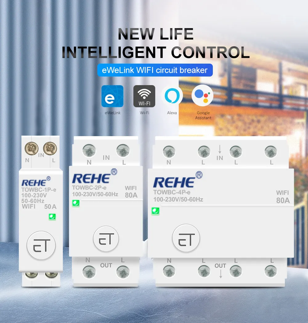 Автоматический выключатель на Din-рейку с Wi-Fi, 1P, 2P, 4P, умный выключатель с дистанционным голосовым управлением через приложение Ewelink для умного дома, таймер mcb, 110 В, 220 В, 380 В