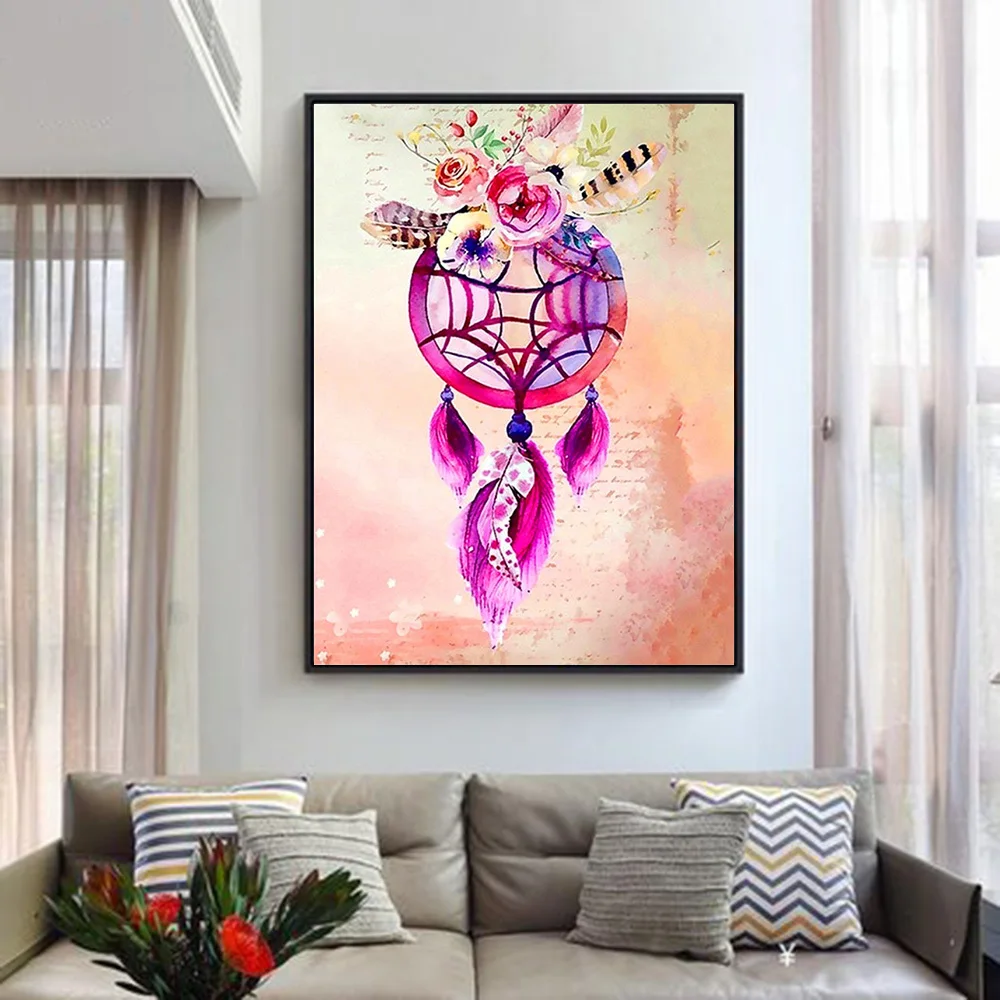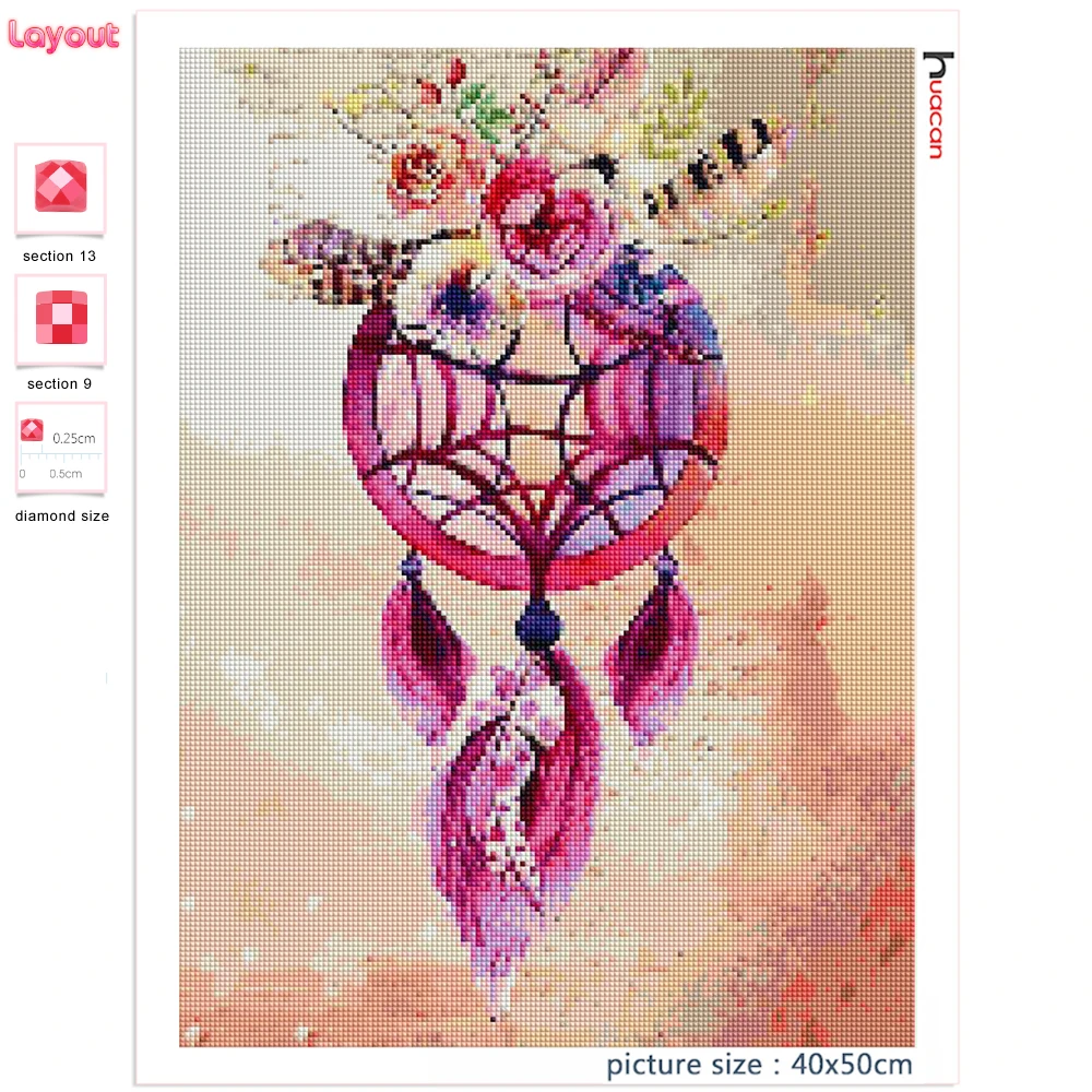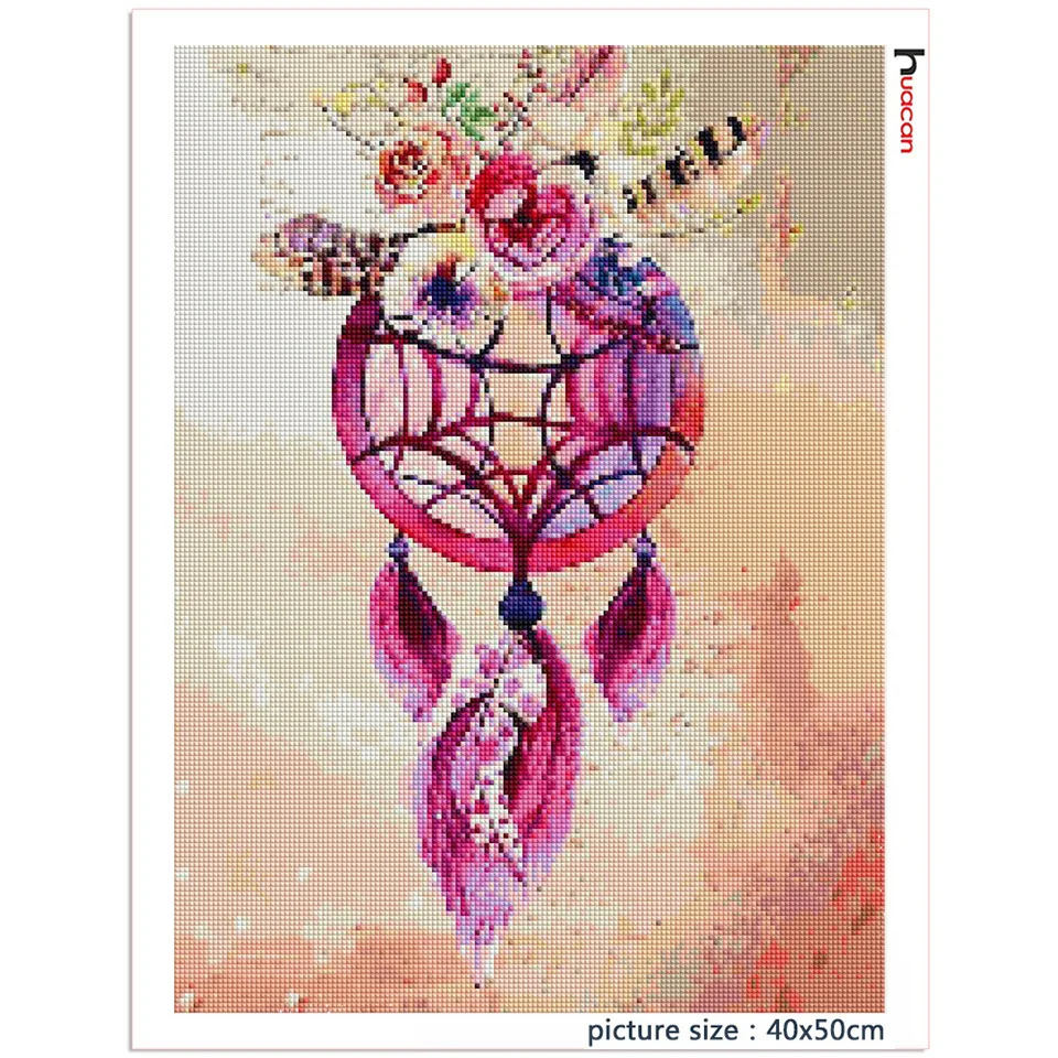 Huacan алмазная живопись, пейзаж с перьями, полная квадратнаякруглая Алмазная мозаика, вышивка Ловец снов, фантазия, домашний декор