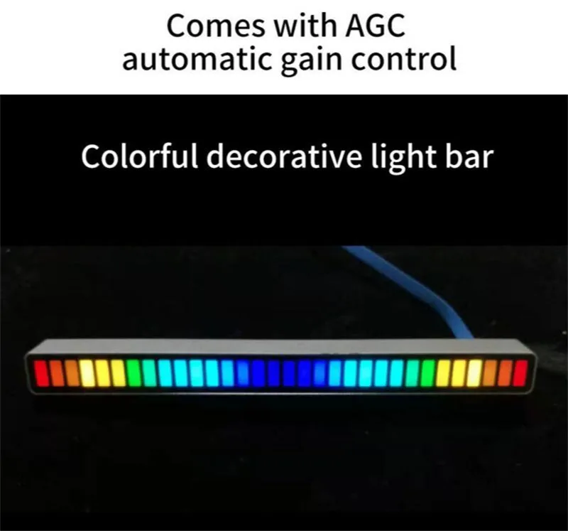 Материал: АБС + электронные компонентыЦвет: серыйРазмер: 181*16*18,5 ммОсобенности:Встроенный высокочувствительный микрофон (Голосовое управление)32 красочные лампы бусиныНе менее 8 режимов отображения4 уровня яркости регулируется5-уровневая регулировкой скорости18 цветовых режимов регулируетсяПоставляется с AGC автоматическим контролем усиленияЭксклюзивный интеллектуальный алгоритм деnoising, может использоваться в шумной средеПараметры продукта:Входное напряжение:> 5 в постоянного тока 1AВходной интерфейс: MicroUSBЧастотная характеристика: 50-16 кГцРазмеры (длина, ширина и высота): 181*16*18,5 ммВес нетто: 86 гОптические характеристики (длина волны):Красный: 620-625 нмЗеленый: 520-525nmСиний: 460-470нмОптические характеристики (яркость)Красный: 450-550mcdЗеленый: 1300-1500mcdСиний: 350-400mcdИнструкции:Кнопка «режим/скорость»: короткое нажатие, чтобы включить режим «Белый»-выбор режима; Длительное нажатие, чтобы включить красный-Выберите 5 скоростейЦвет/яркий ключ: короткое нажатие, чтобы включить белый-Выберите цвет; Длинное нажатие, чтобы включить зеленый-Выберите 4 уровня яркостиНажмите две кнопки одновременно: Нажмите одновременно, чтобы включить синий-чтобы узнать спектр шума окружающей средыНажмите и удерживайте цвет одновременно при включении питания: Введите режим настройки усиленияВключение питания (только для модели аккумулятора): Нажмите кнопку цвета после выключения питанияВыключение (только для модели батареи): Держите лицо вниз в течение 3 секундУпаковочный листСветильник-1 шт.1 кабель для передачи данных1 х Руководство