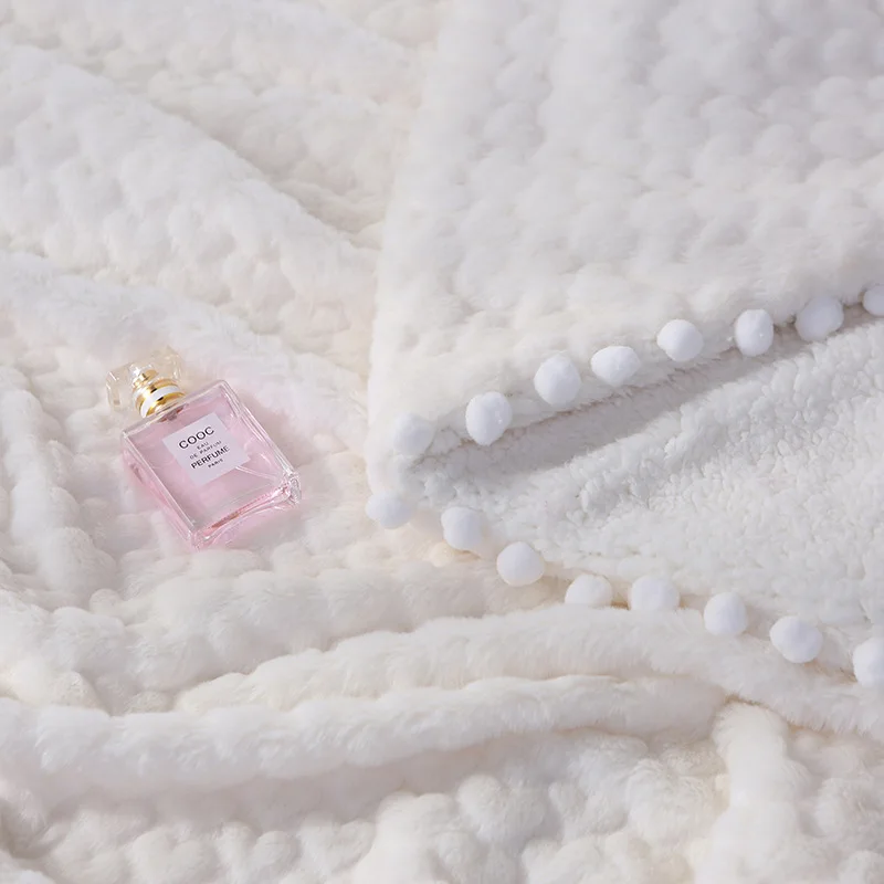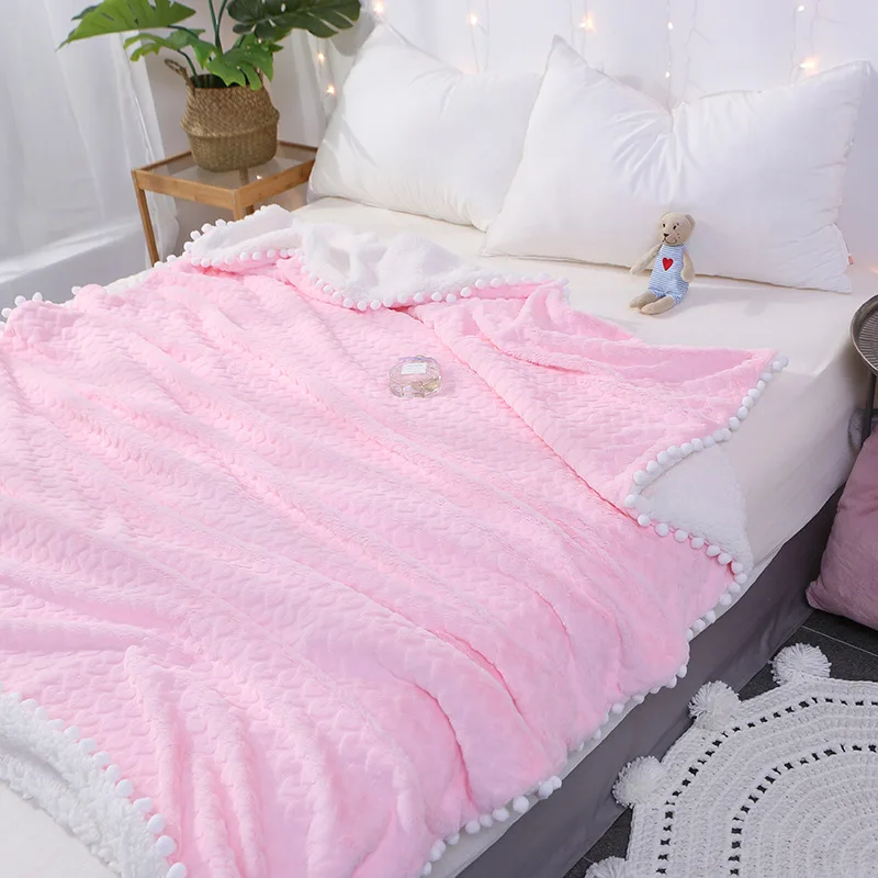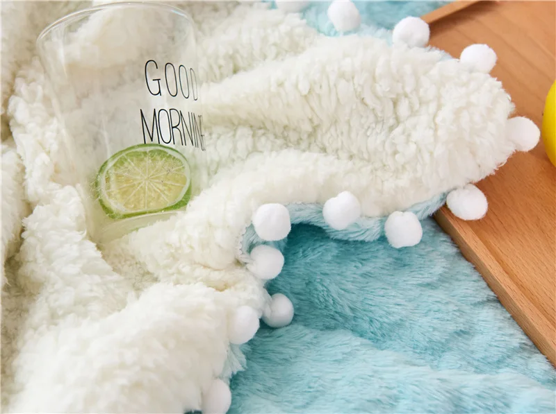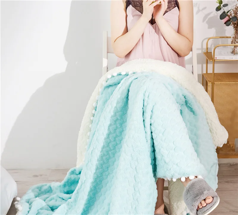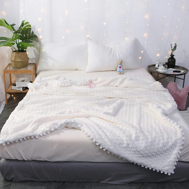 Супер мягкое искусственное одеяло, хлопковое однотонное одеяло для девочек, подарок, удобное покрывало на диван, одеяло с помпонами