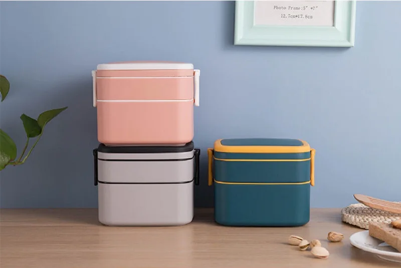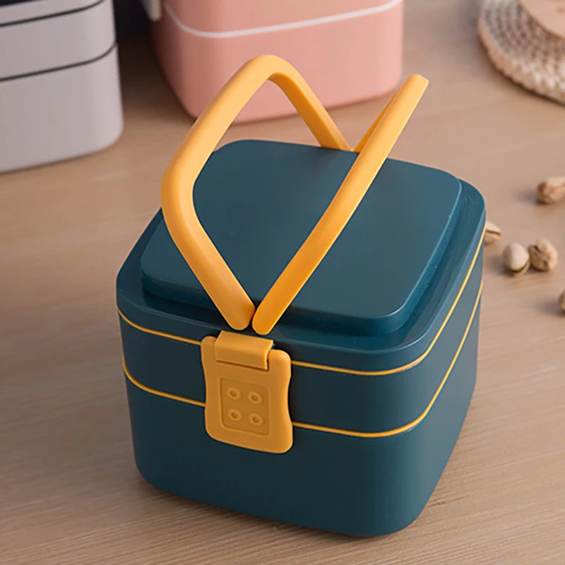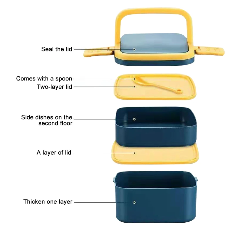 Двухслойный Портативный Ланч-бокс с крышкой, Ланч-бокс бэнто, Ланч-...
