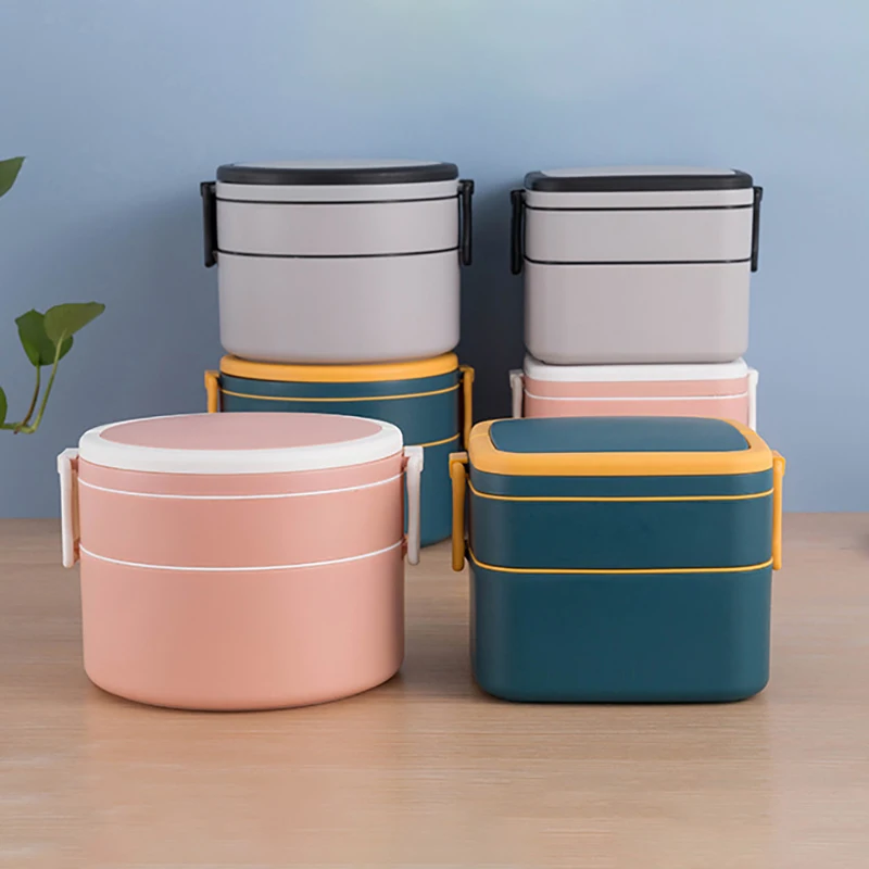 2-Ярусный Ланч-бокс Bento, квадратныйкруглый Штабелируемый Ланч-бок...