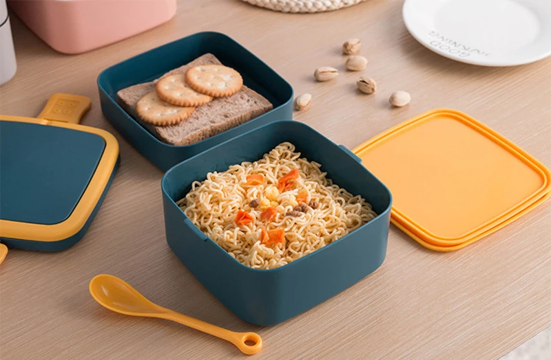 Двухслойный Портативный Ланч-бокс с крышкой, Ланч-бокс для офиса, Р...
