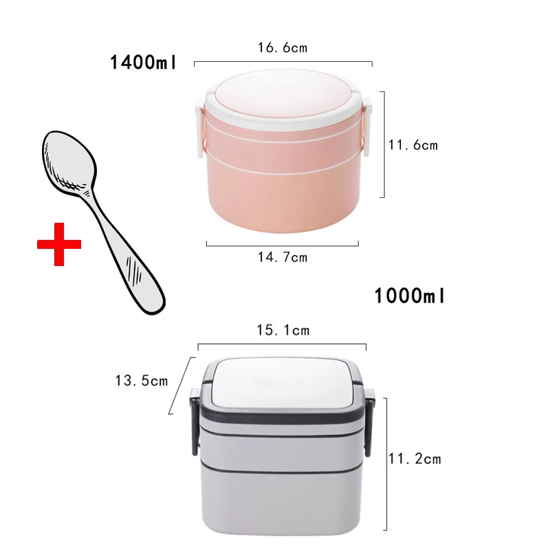 1400 мл двухслойный Ланч-бокс с ложкой микроволновый сэндвич Бенто-...
