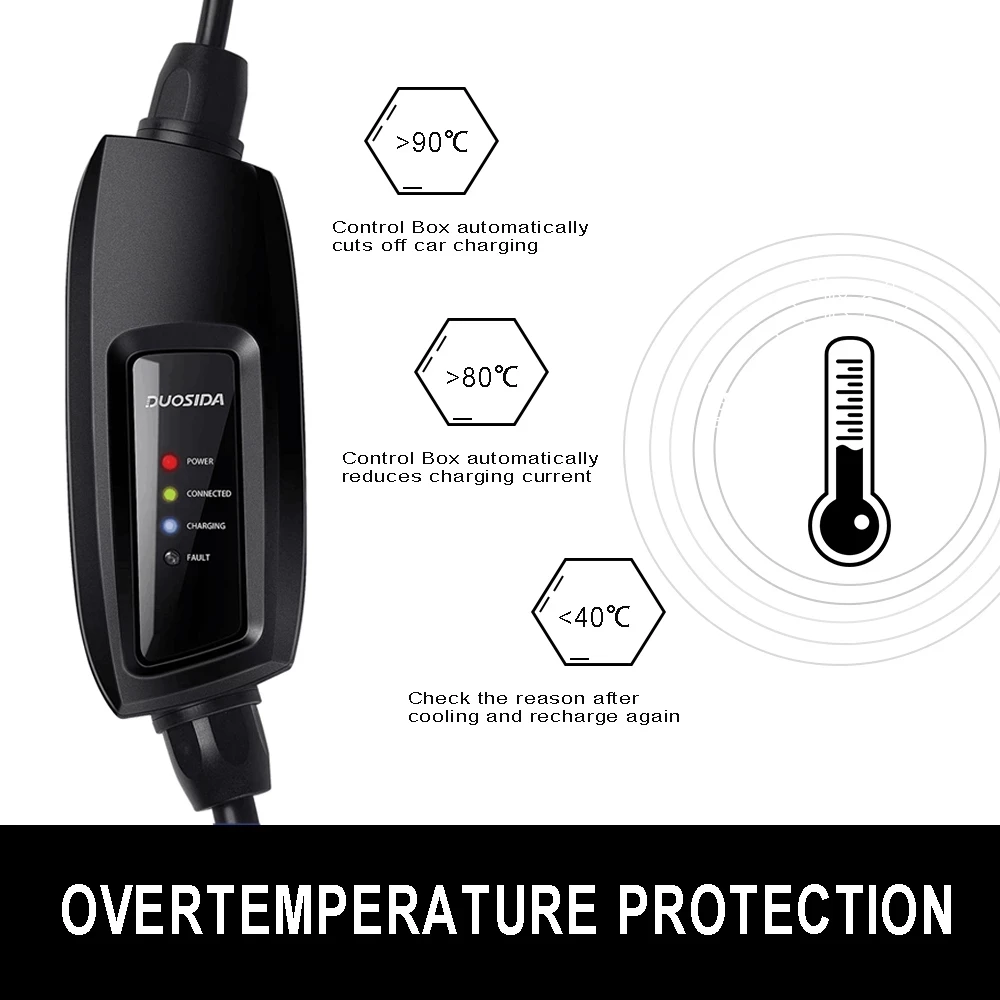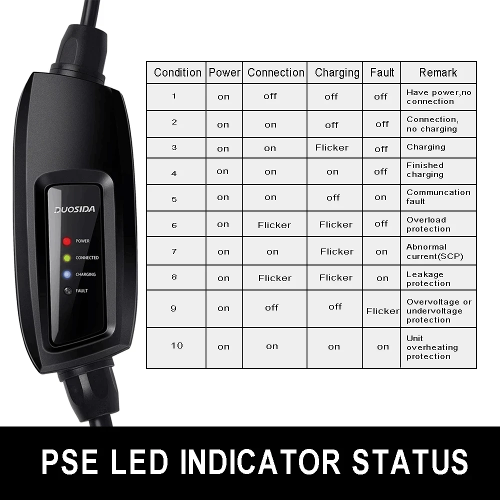 1. Зарядный разъем соответствует стандарту SEA J1772 20102. Разъем питания соответствует стандарту Shuko3. Блок управления соответствует принципу управления SEA J1772 20104. Высокая производительность защиты, уровень защиты наконечника пистолета достигает IP44 (рабочее состояние), а уровень защиты блока управления достигает IP67/55 (рабочее состояние)