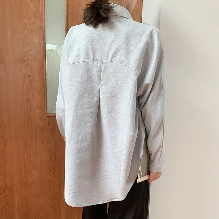 Женская Однотонная рубашка с рукавами реглан, толстая Свободная блузка в Корейском стиле, Осень-зима 2021