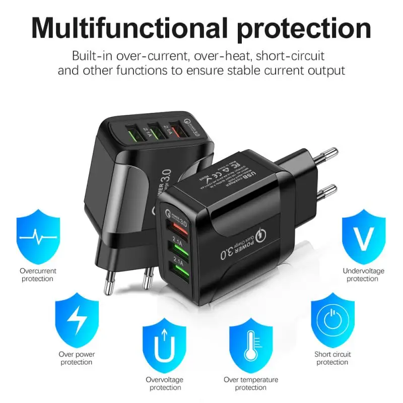 Зарядное устройство с 3 USB-портами и поддержкой быстрой зарядки