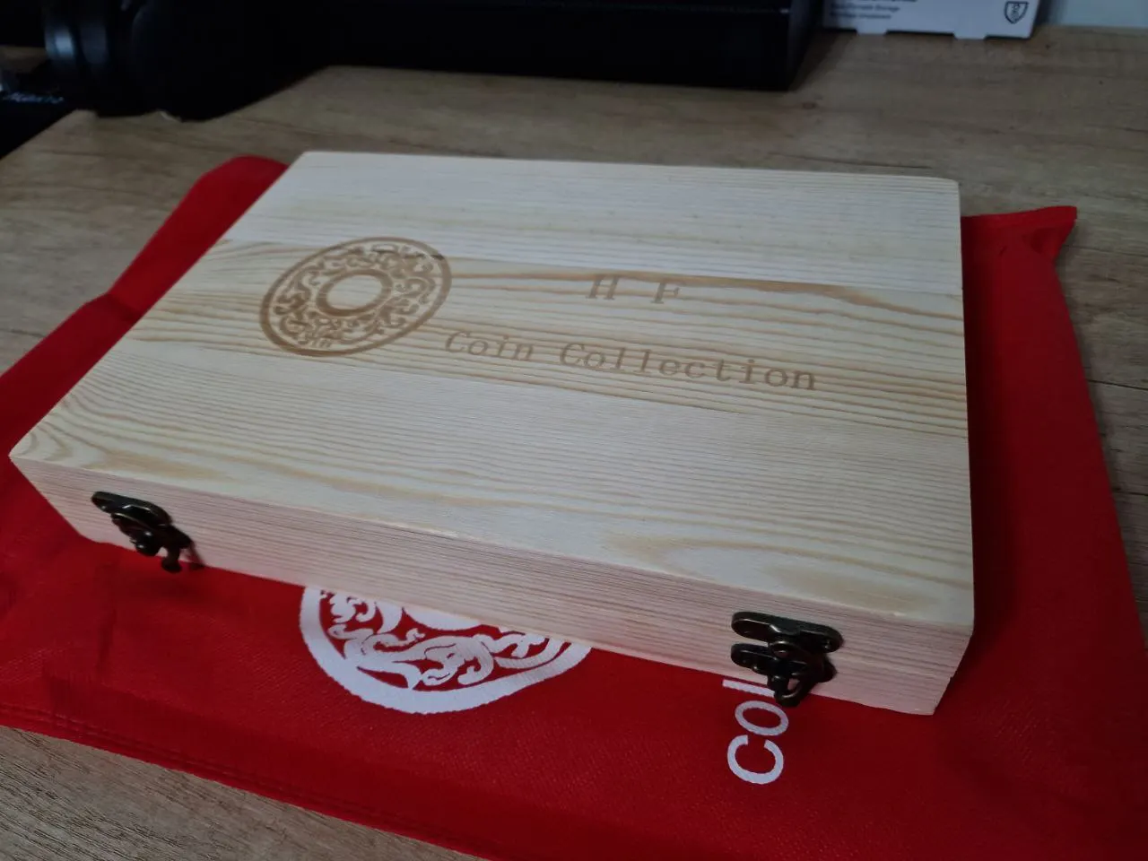 Коробка изготовлена из твердого дерева и имеет 5 различных форм резиновых прокладок eva, которые покрывают почти всю монету, весы, твердую серебро, настоящие от восьми. Успех.,