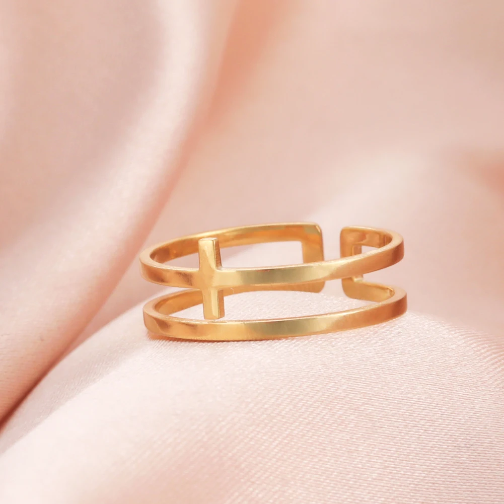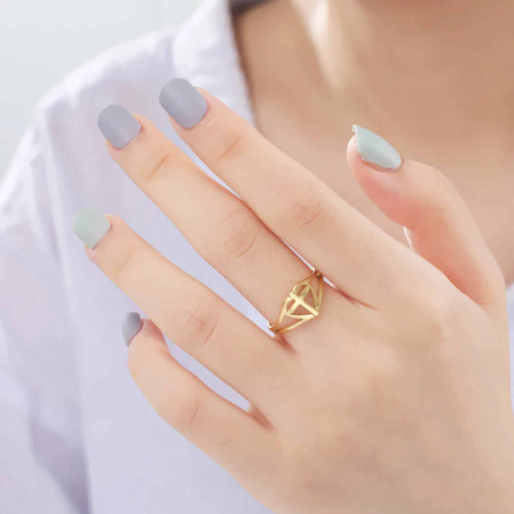 Skyrim 2022, кольца с крестом Иисуса для женщин, нержавеющая сталь, золотой цвет, Открытое кольцо на палец, христианские новые модные ювелирные изделия, вечерние, подарок