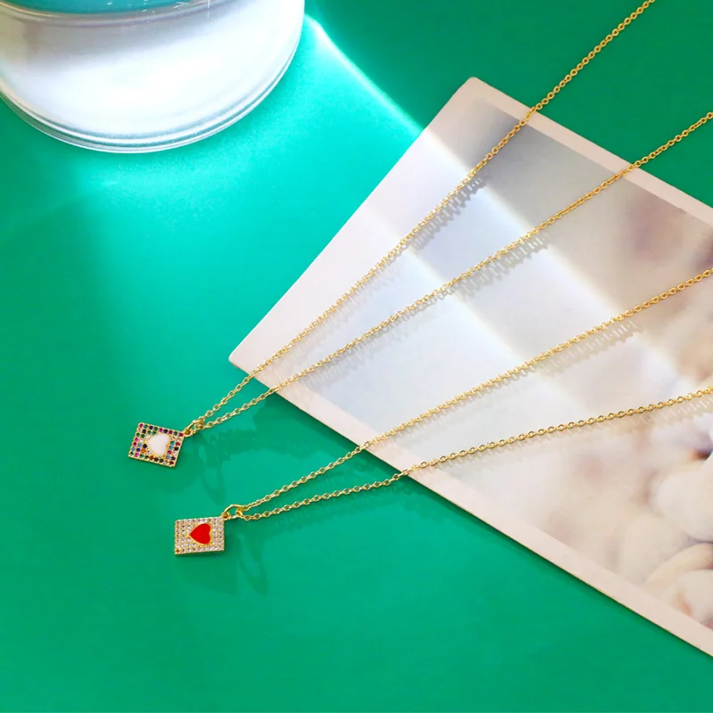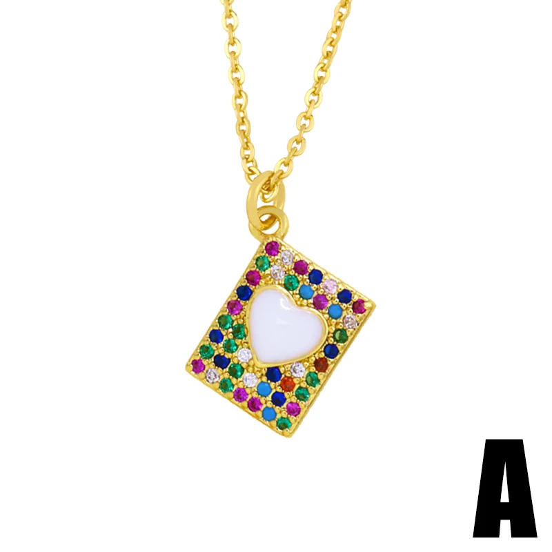FLOLA медный CZ ожерелье Красное сердце разноцветный белый камень Золотая цепь с кристаллом ожерелье Радуга ювелирные изделия nkew14