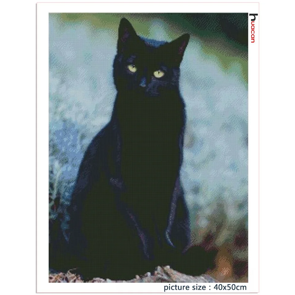 Huacan полноразмернаякруглая алмазная живопись, Черный кот, домашний декор, алмазная вышивка, мозаика, животные, фантастические наклейки на стену