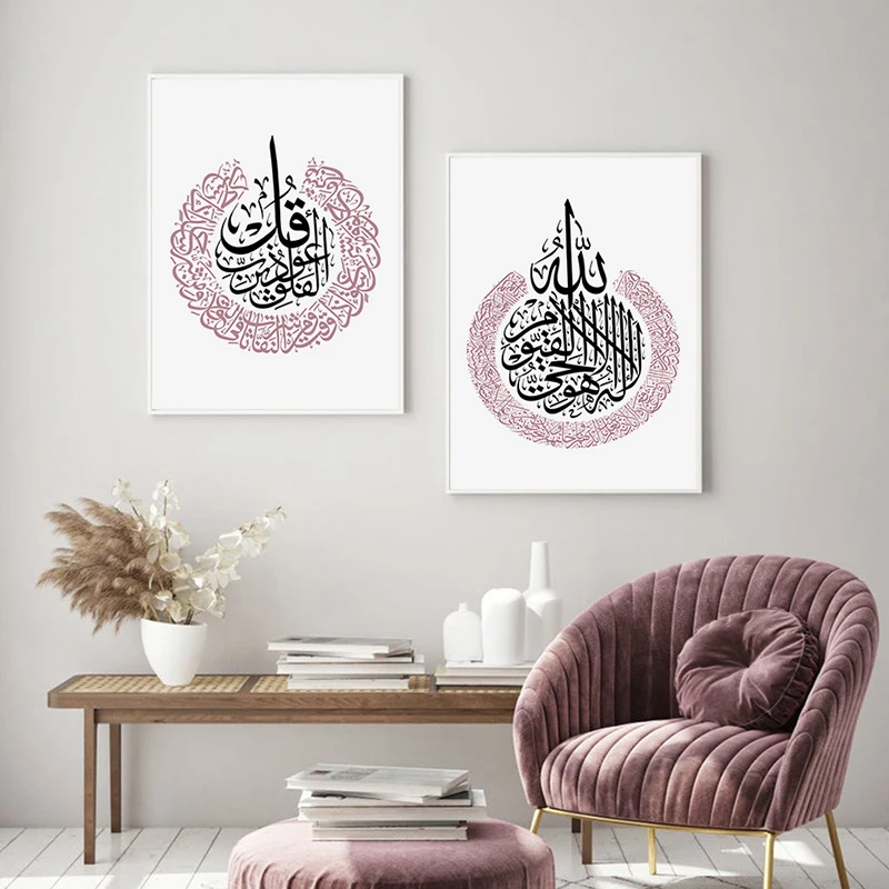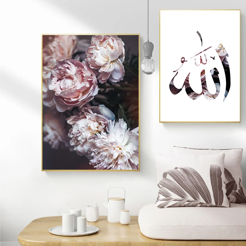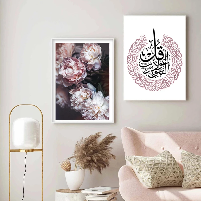 Розовый цветок мусульманский холст фотообои арабская каллиграфия Ayat Kursi Коран мусульманская стена искусство гостиная украшение для дома