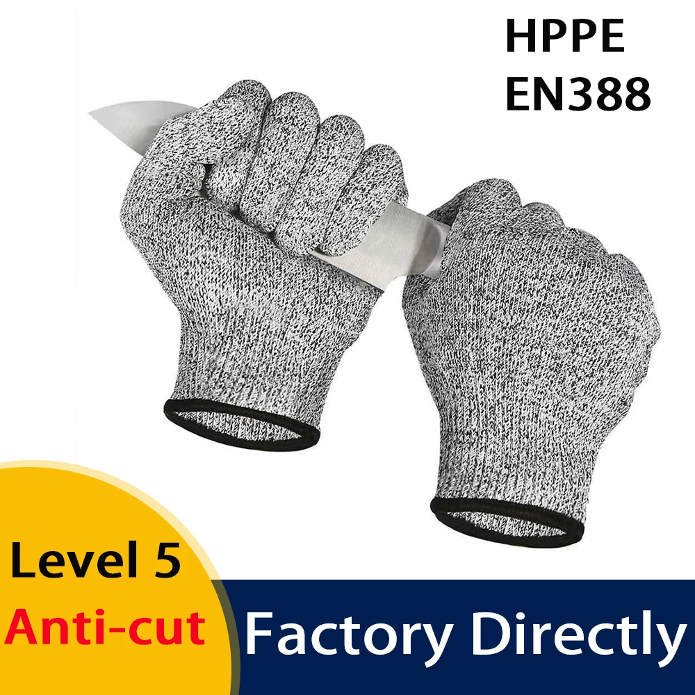 Перчатки с защитой от порезов, перчатки для кухни и садоводства, серые, черные, HPPE EN388, перчатки с защитой от порезов, 5 уровней безопасности