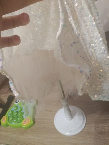 На фото в реальной жизни, как небо и земля. Фасон не тот, юбка не пышная, рукав широкий, на юбке дырка, ткань дешёвая, швы кривые, на юбке есть участок кромки - без поеток. Хотела вернуть, но нет времени везти на почту. Очень грустно, этих денег не стоит!