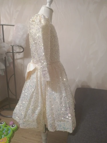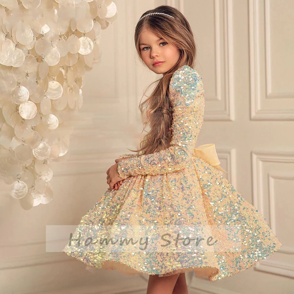 Платье для девочек, с квадратным вырезом и блестками, на молнии, с длинным рукавом, 2021