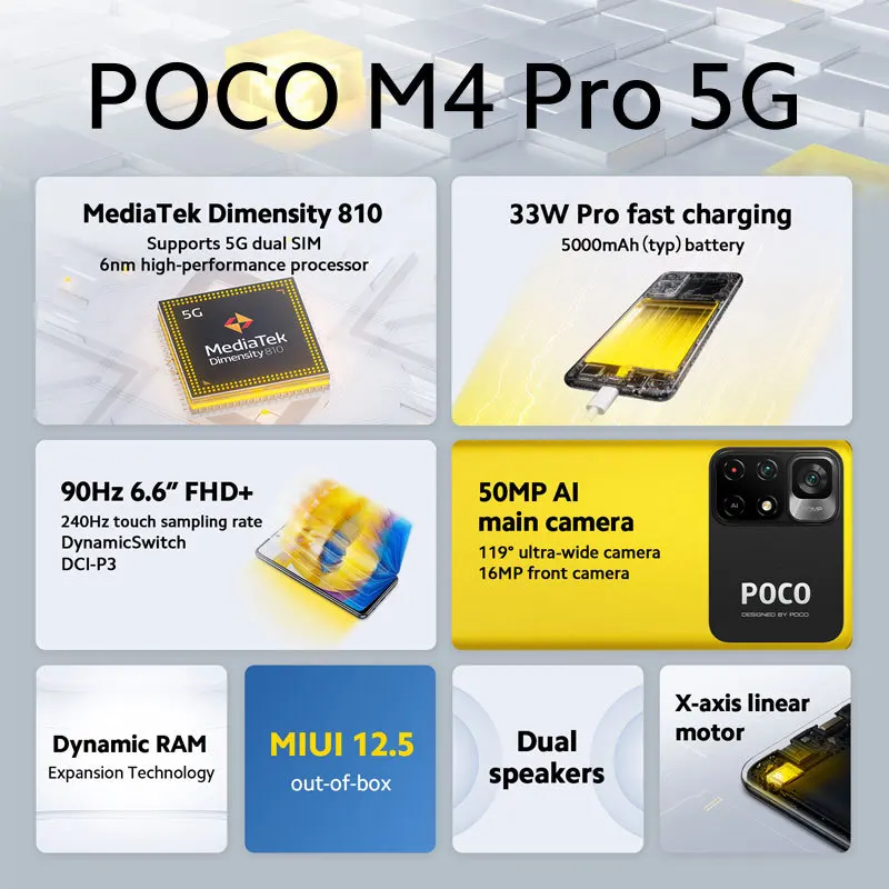 Смартфон глобальная версия POCO M4 Pro, 64 ГБ128 ГБ ROM, MTK Dimensity 810, 90 Гц, 6,6 дюйма, DotDisplay, 50 МП, 5000 мАч, батарея 33 Вт Pro, NFC