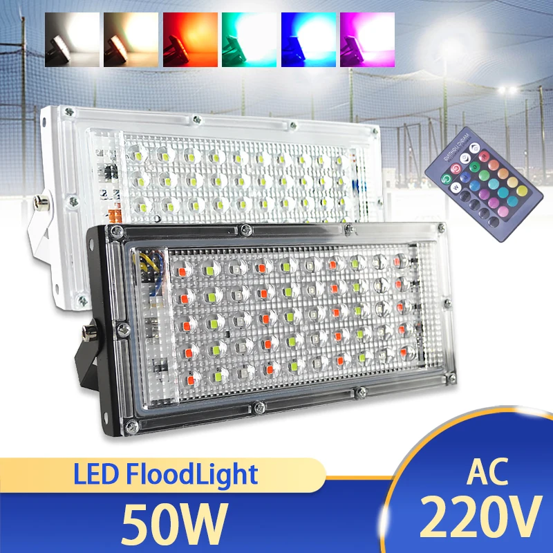 Светодиодный прожектор 50 Вт AC 220 В 240 В Уличный прожектор Точечный светильник RGB теплый холодный светодиодный уличный светильник IP65 Водонепроницаемый ландшафтный светильник
