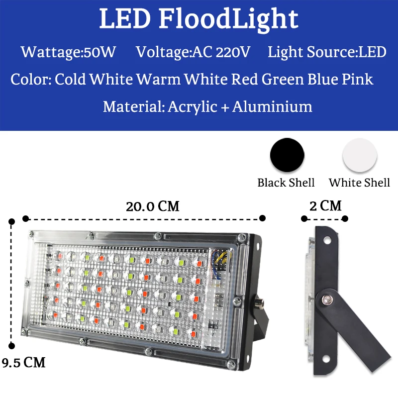 Светодиодный прожектор 50 Вт 100 Вт Холодный теплый RGB AC220V 240 ...