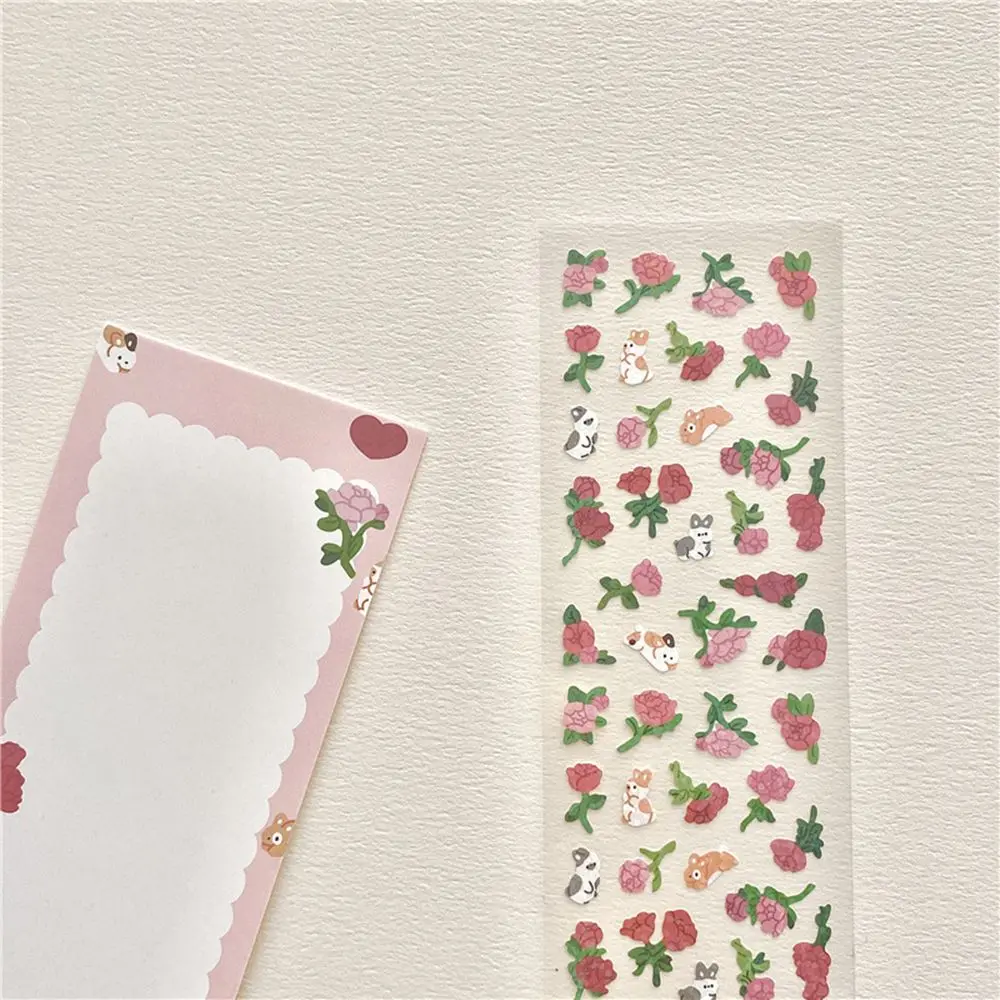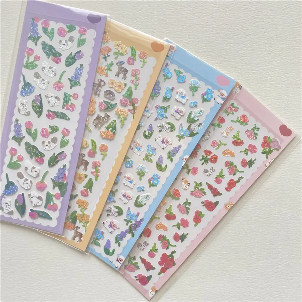 Милая Цветочная животная лазерная наклейка хлопья ручная учетная запись Kawaii корейский DIY альбом Украшение скрапбукинг розы наклейки домашний декор