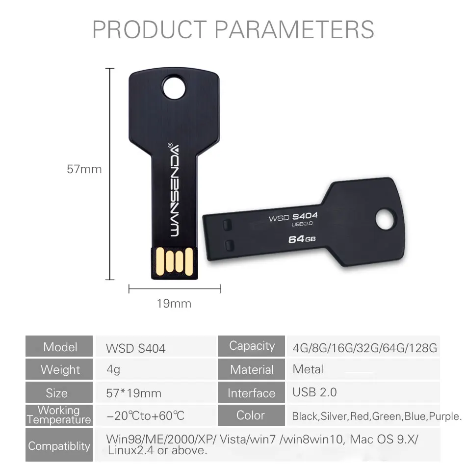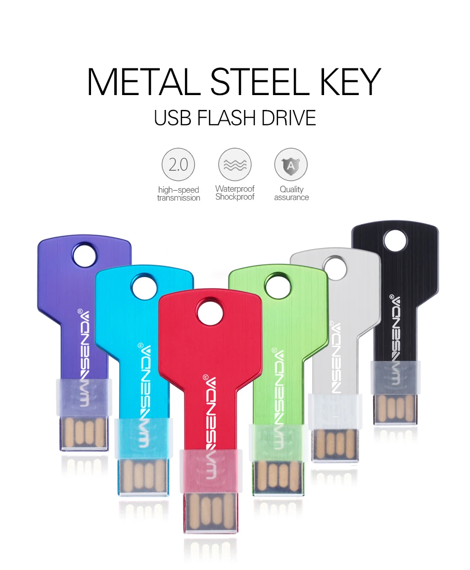 Wansenda водонепроницаемый USB флеш-накопитель в форме ключа, 4 ГБ, 8 ГБ, 16 ГБ, 64 ГБ