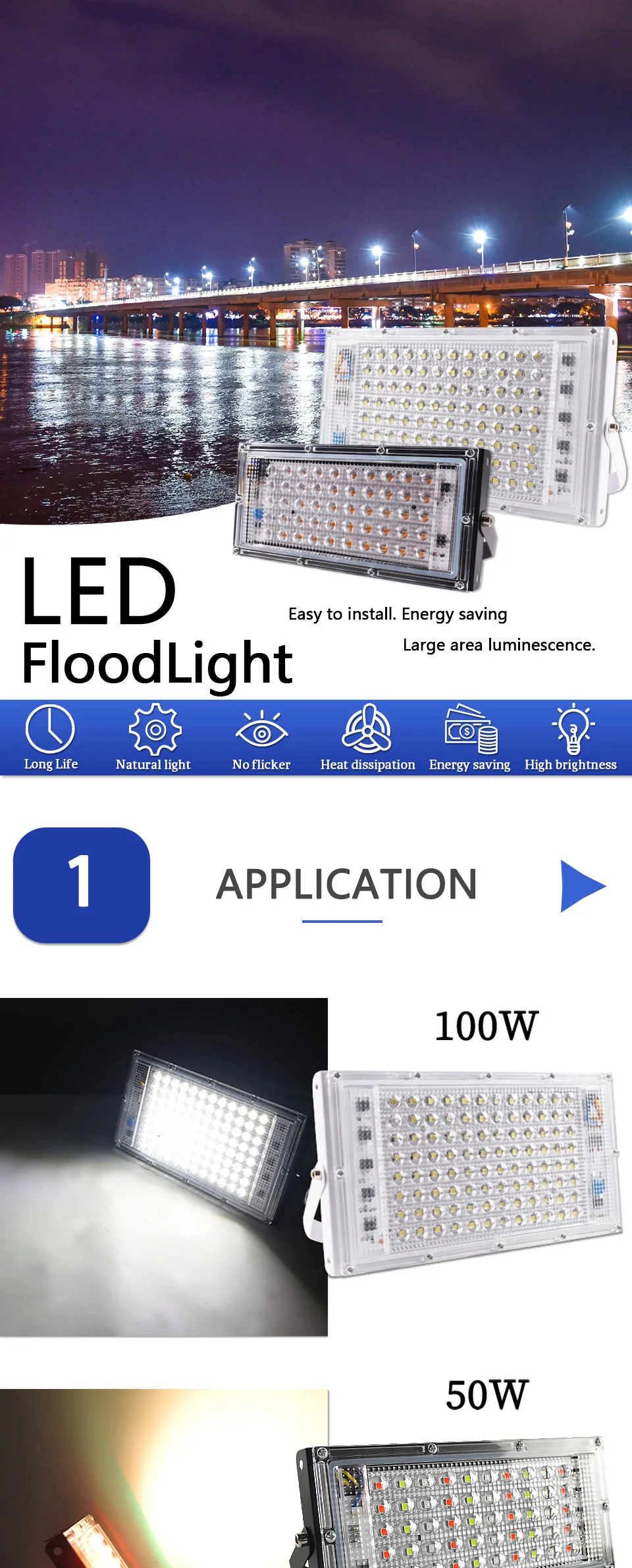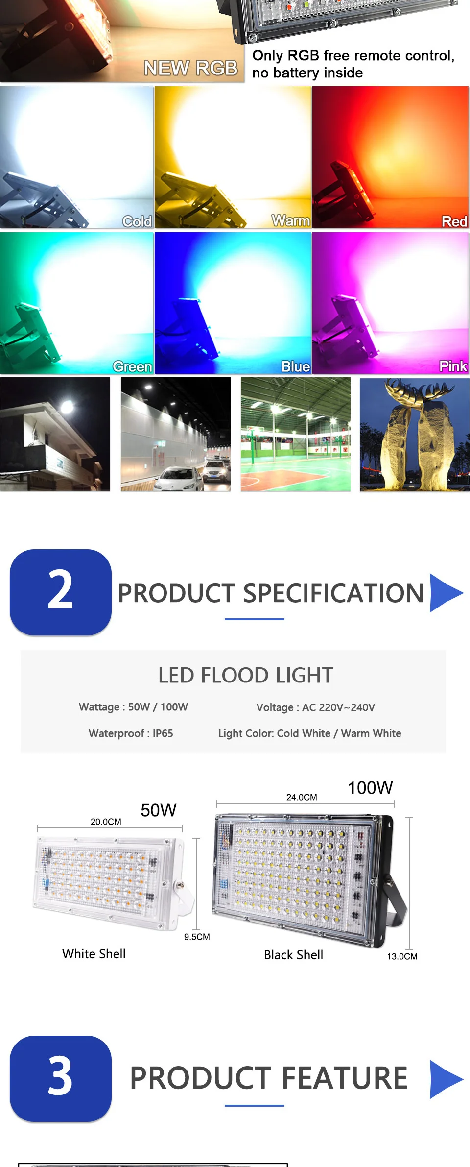 Светодиодный прожектор 50 Вт 100 Вт Светодиодный прожектор холодный теплый RGB ac220в 240 В светодиодный уличный фонарь Водонепроницаемый IP65 Светодиодный прожектор светильник льник