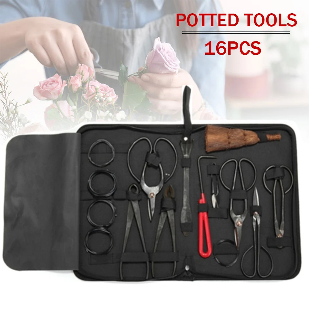 Набор инструментов для бонсай из 16 штук Гарантия качества-изготовлено из углеродистой стали, полностью проверено и слегка Смазано Отличная прочность, портативность и удобство хранения. В комплект входит нейлоновый чехол. Прост в использовании и эксплуатации. Идеально подходит для использования бонсай. Удовлетворить ваши любимые потребности в садоводстве, ослаблении почвы, резке, обрезке, обрезке и так далее, лучший подарок для любителей бонсай.