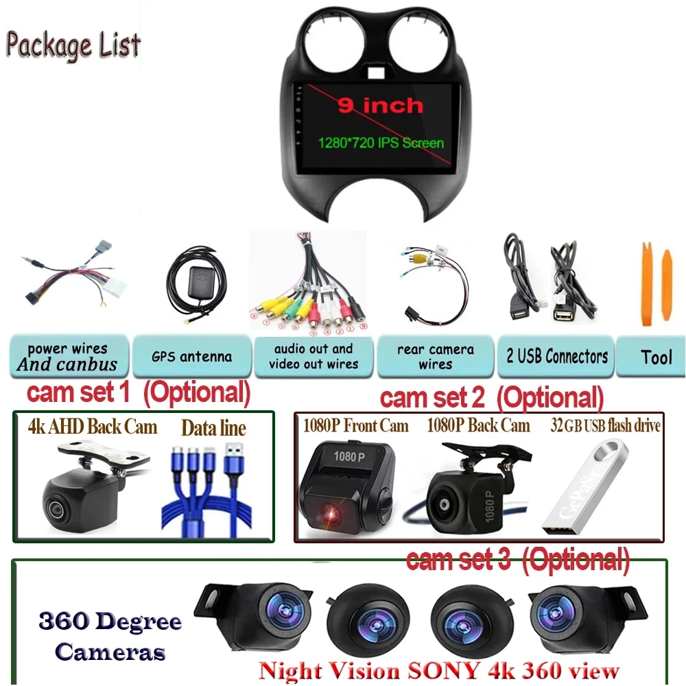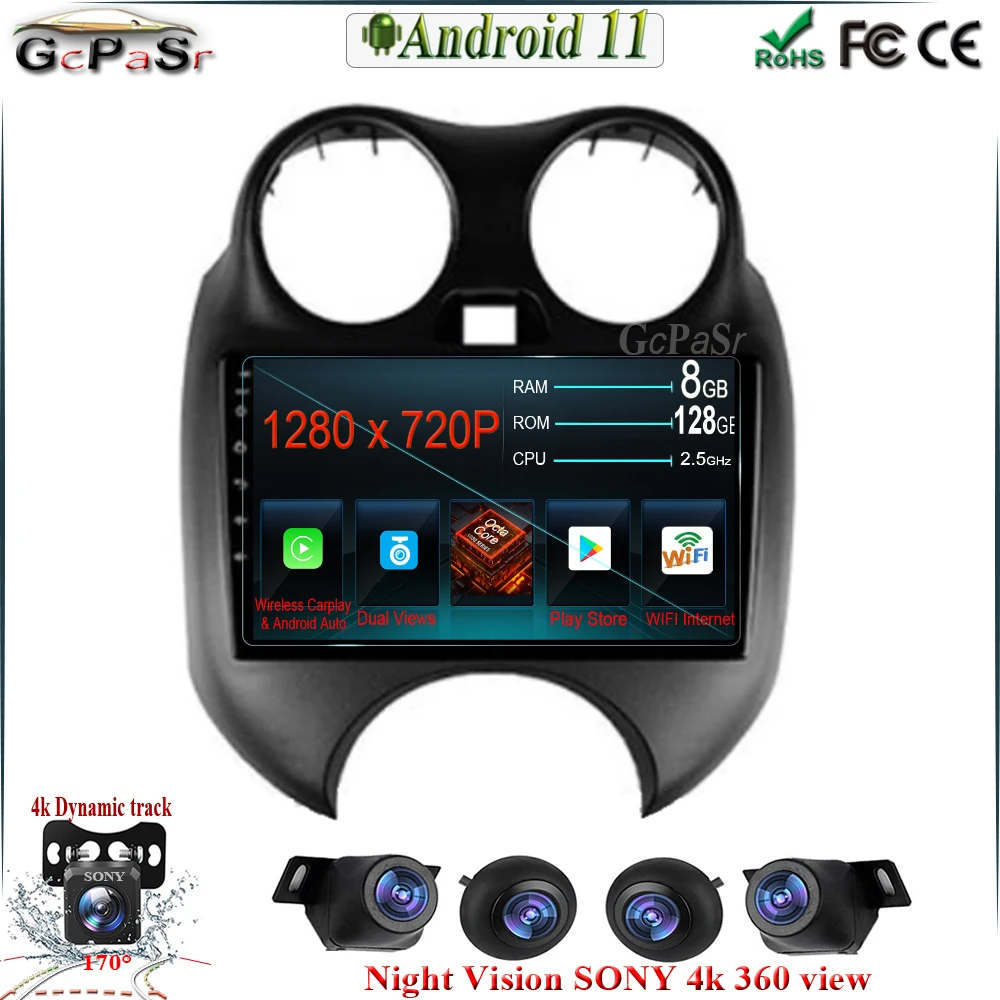 9 "Android 11 автомобильный для Nissan Micra 2010-2017 автомобильны...