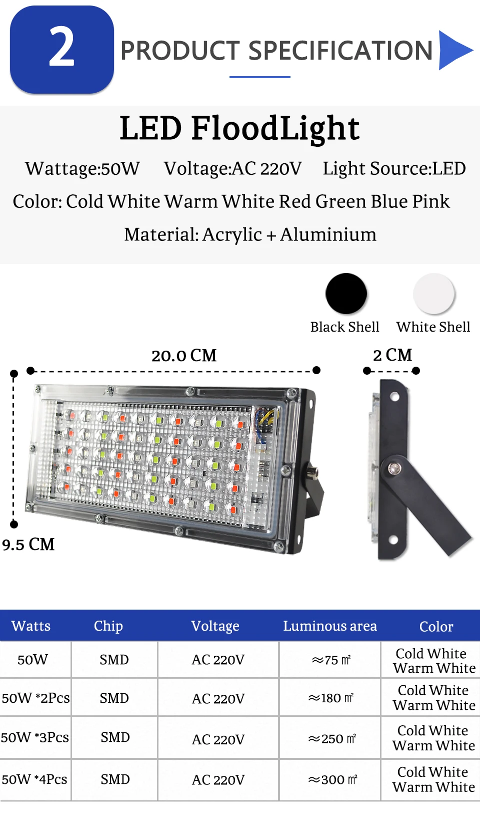 Светодиодный прожектор 50 Вт 100 Вт Холодный теплый RGB AC220V 240 ...