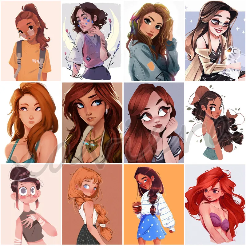 Xaviera Diy алмазная живопись мультяшная девушка цифровой художник ...