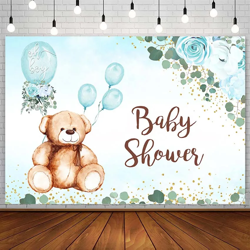 Эвкалипт фон с листьями синие воздушные шары цветочный мальчик ребенок душ фотография Фон Фотостудия Декор реквизит фотозона