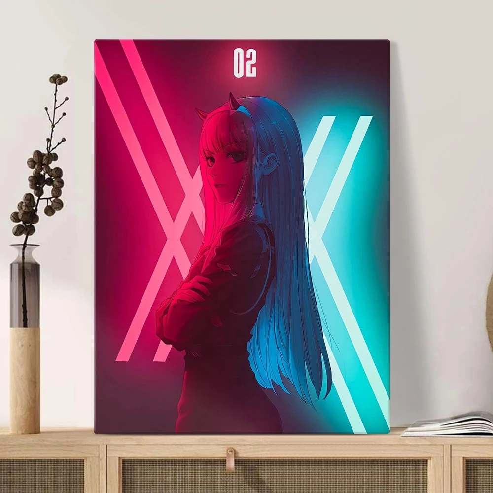 WTQ Картина на холсте Zero Two 002 DARLING In The FRANXX неоновые а...
