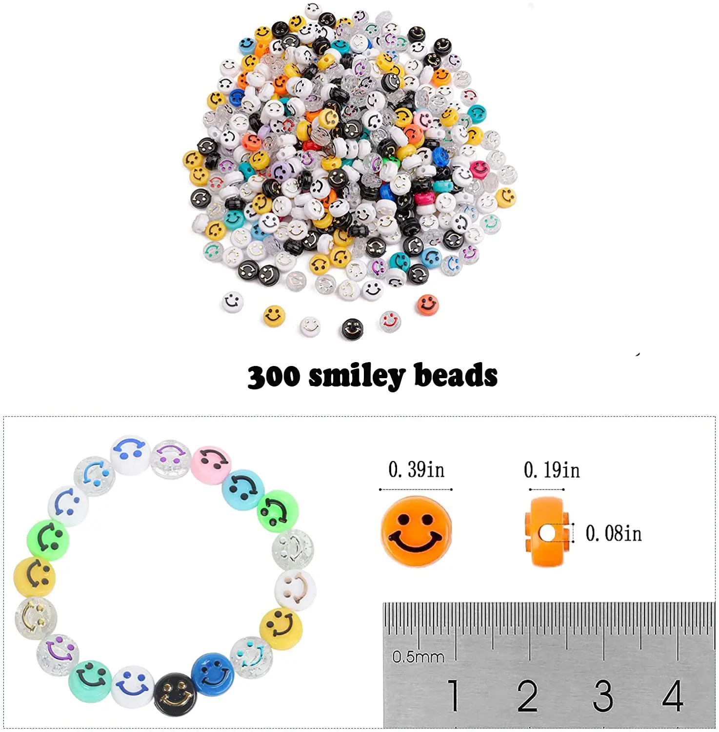 Бусины-распорки для изготовления ювелирных изделий, акриловые, со смайликом, 50 шт.