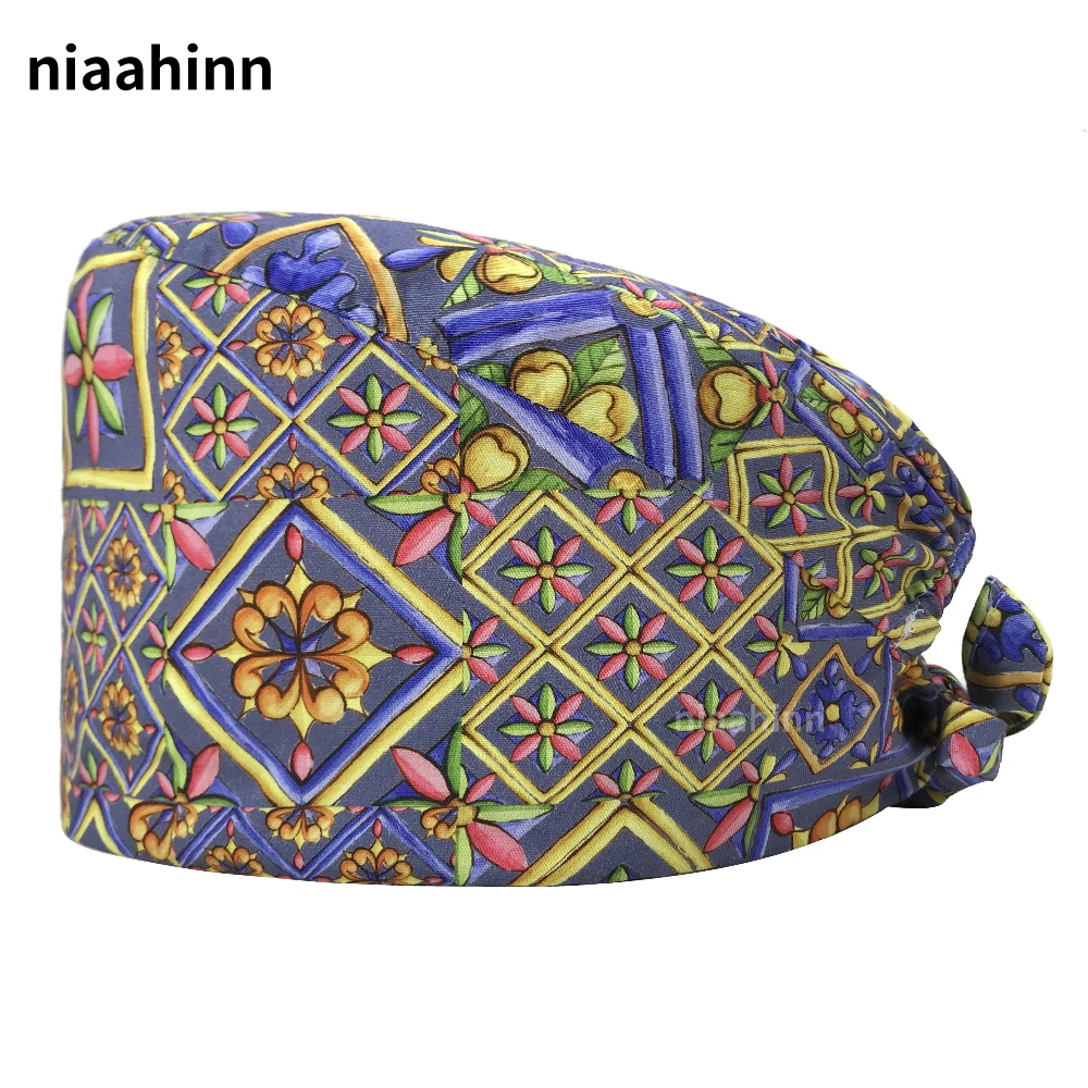 Женские скрабы для кормления, кепки с мультяшным принтом, лабораторные Регулируемые головные уборы с рисунком животных для больницы, медсестры, врача