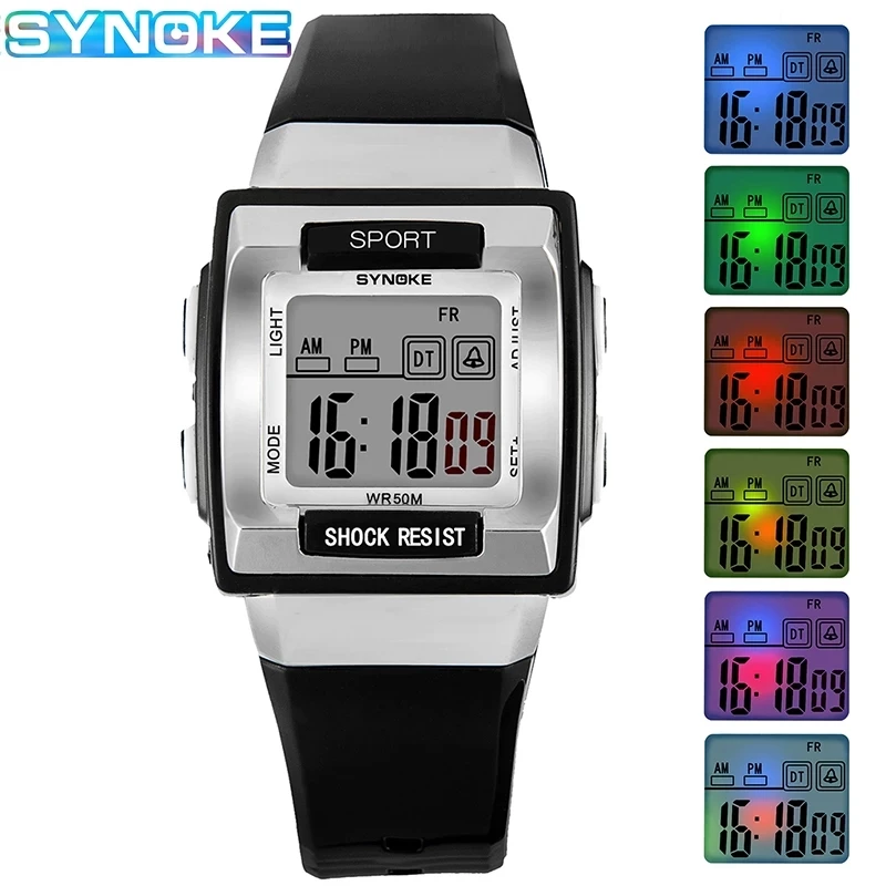 SYNOKE детские цифровые часы для спорта на открытом воздухе модные многофункциональные водонепроницаемые большой циферблат Светящиеся Наручные часы будильники