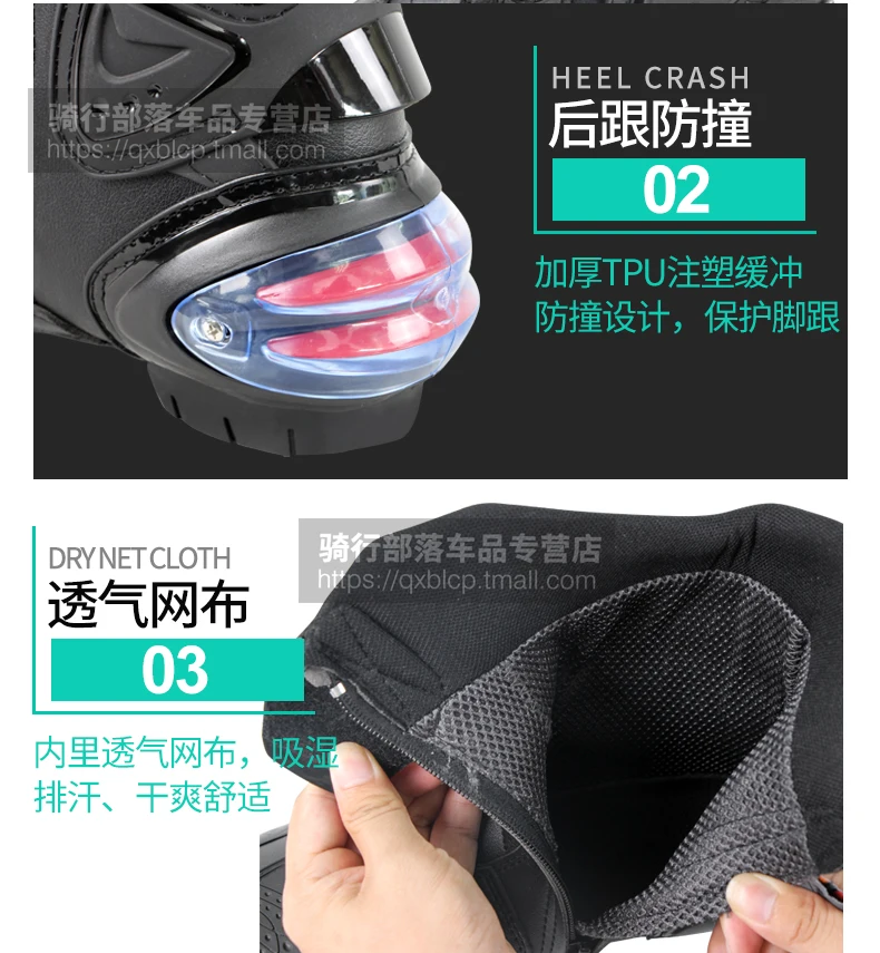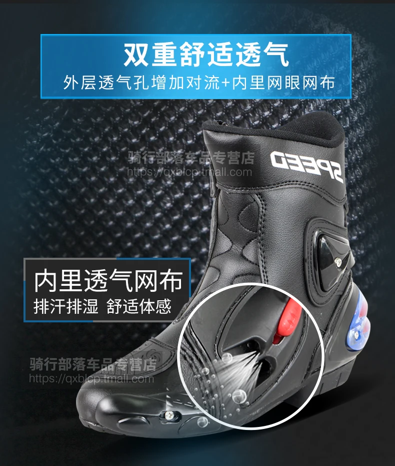 Описание:Материал верхней части: кожа из сверхвысокого волокнаПодкладка: 100% нейлонПодошва: резинаВысококачественные ботинки Gore Tex. Удобно и безопасно для езды на улице или на трассе в течение всего дня. Очень высокий материал из волокнистой кожи более прочный и дышащий, чем кожа. Удобно ходить.1. Высокоскоростная система вентиляции2. Двойной ТПУ инъекции анти-шок буферный дизайн защита голени.3. Система защиты от ударов по лодыжку4. Высокая износостойкая Нейлоновая Молния и эластичная регулировка на липучке, более удобно носить и снимать.5. Новое поворотное эластичное регулирующее устройство, удобно регулировать и удобно носить.6. Сменные ползунки7. Нескользящая конструкция сдвигаЦвет: черный/красный/белыйРазмер: 40/41/42/43/44/45В комплект входит: 1 пара мотоциклетных сапогОбратите внимание: пожалуйста, выберите сапоги по длине стельки, спасибо
