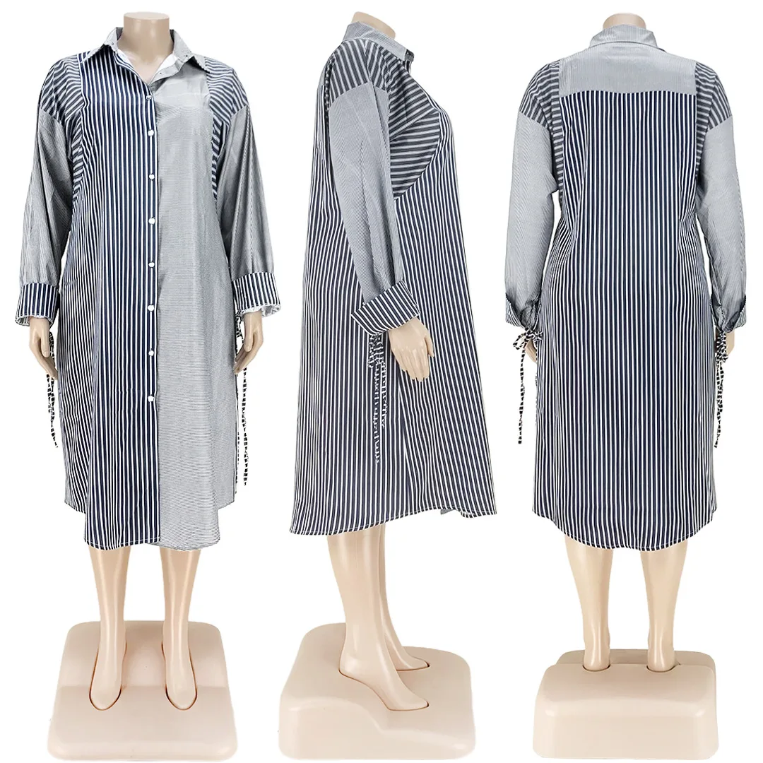 Женская одежда размера плюс 4XL 5XL, элегантное винтажное платье-рубашка в полоску с длинным рукавом, офисное платье
