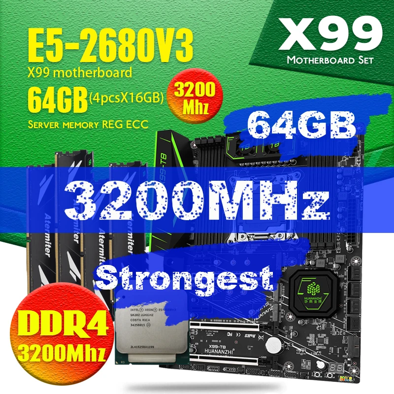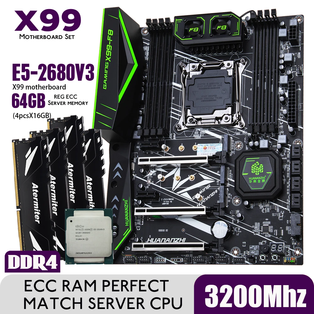 Материнская плата HUANANZHI X99 F8 с Intel XEON E5 2680 V3 с 4*16 ГБ = 64 Гб DDR4 3200 МГц PC4 REG ECC память комбинированный комплект NVME