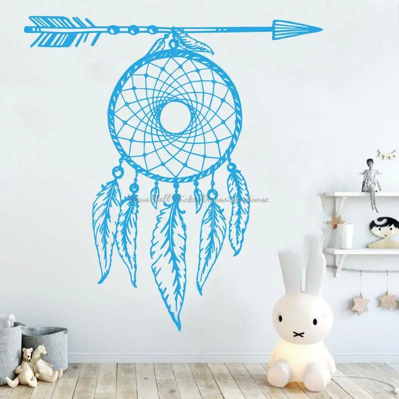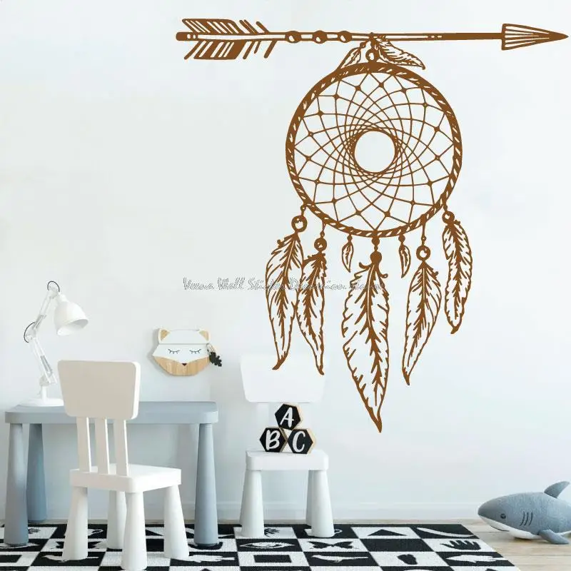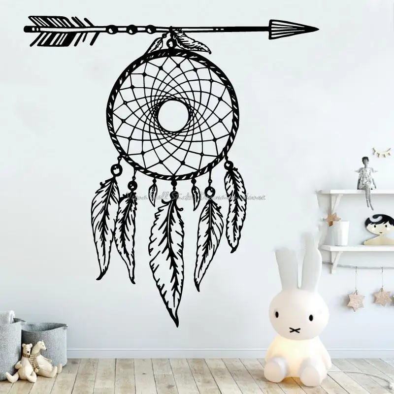 Настенные виниловые наклейки Ловца снов со стрелками и перьями, настенные Стикеры для гостиной, спальни, богемные фрески ZM10