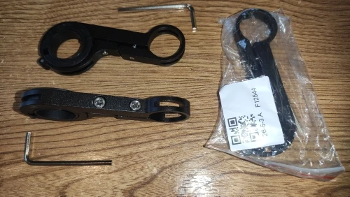 Я заказал 2 отдельных заказа по 3 кронштейна, чтобы сэкономить на почтовой пересылке. 3 поставляется в отдельном заказе с велосипедным насосом. Я жду, чтобы узнать, загорятся ли другие 3. Помимо всего этого, они очень пригодны для использования. Я увидел их по хорошей цене, поэтому заказал 6 в 2 заказах по 3 штуки. Проблема только в том, что вам нужно использовать небольшую упаковочную ленту или аналогичную, чтобы остановить их скольжение на руле, независимо от того, сколько вы попытайтесь затянуть их. Получите длину соответствующего диаметра трубы из магазина оборудования, чтобы сделать расширение руля любого размера, который вы хотите. Нанесите черный цвет при необходимости. Рекомендовано