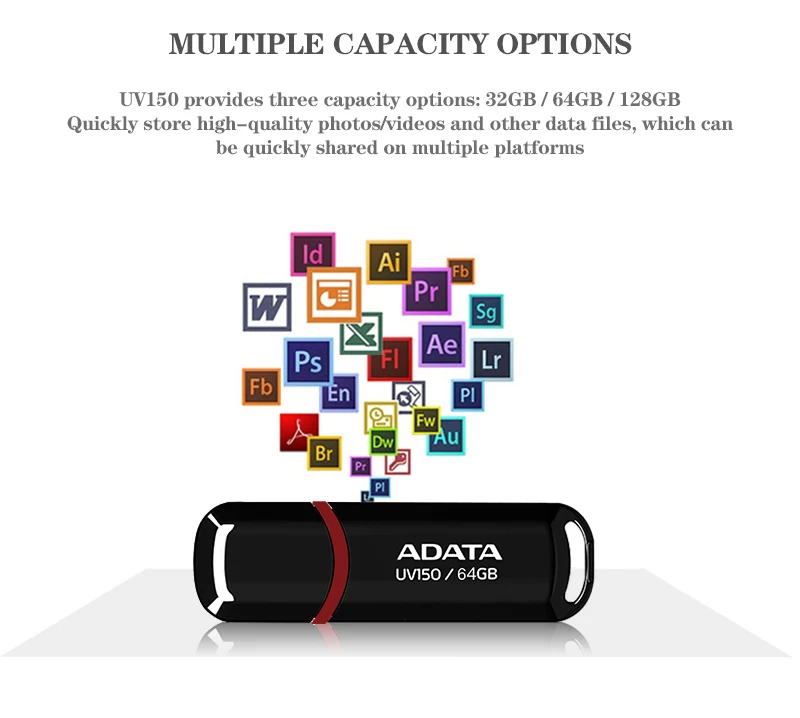 USB-флеш-накопитель ADATA UV150, USB 3,2, 32 ГБ, 64 ГБ, 128 ГБ, чер...
