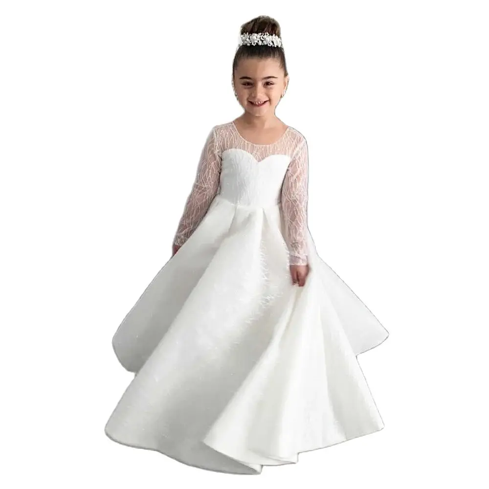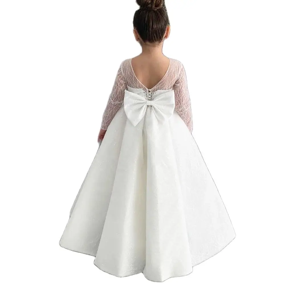 Цветочное платье с бантом для девушек, платье из органзы цвета слоновой кости для свадебной вечеринки, милое бальное платье, элегантные платья принцессы, новый год 2021