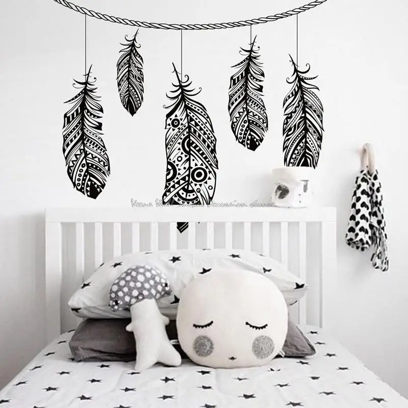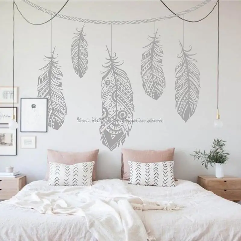 Ловец снов, настенная наклейка в стиле бохо, богемное украшение с перьями, наклейка на стену в стиле Ловец снов, украшение в стиле бохо, Настенная Наклейка с перьями SH18