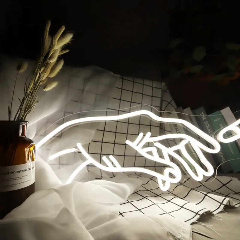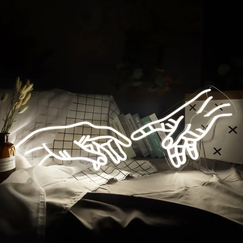 Неоновая вывеска Hands of God для спальни, неоновый светильник на заказ, цвета, светодиодные неоновые вывески на заказ для украшения стен, прозрачный акрил